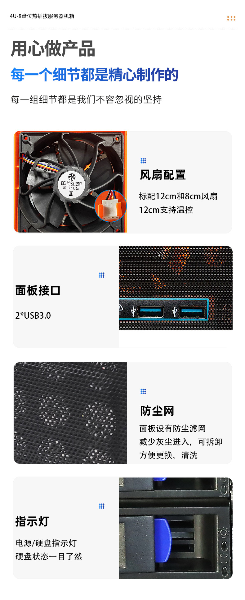4U-R4408 서버 케이스 핫스왑 8하드디스크 슬롯 스토리지 컴퓨터 그래픽 카드 AI 연산 GPU 렌더링스토어 가기