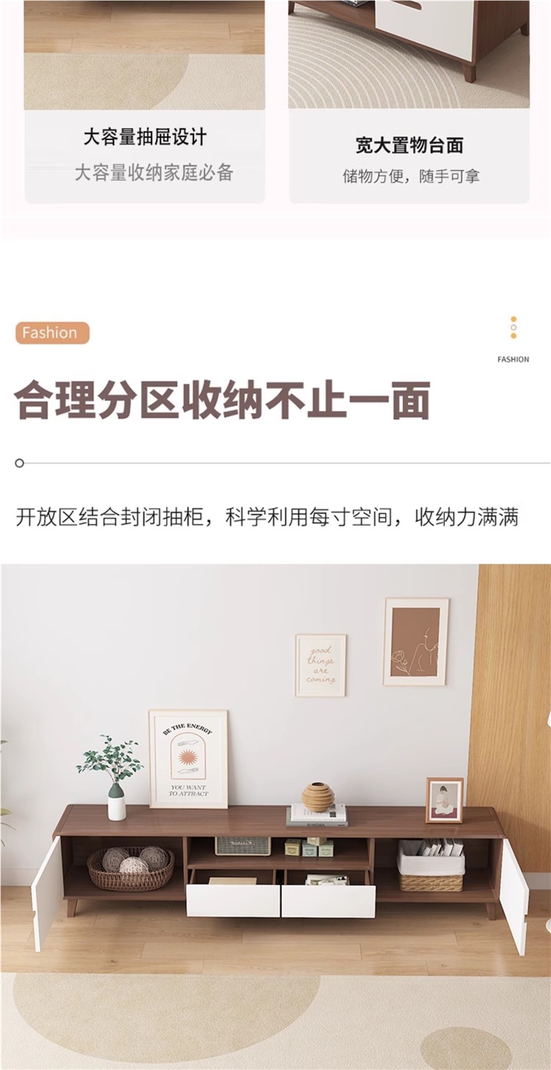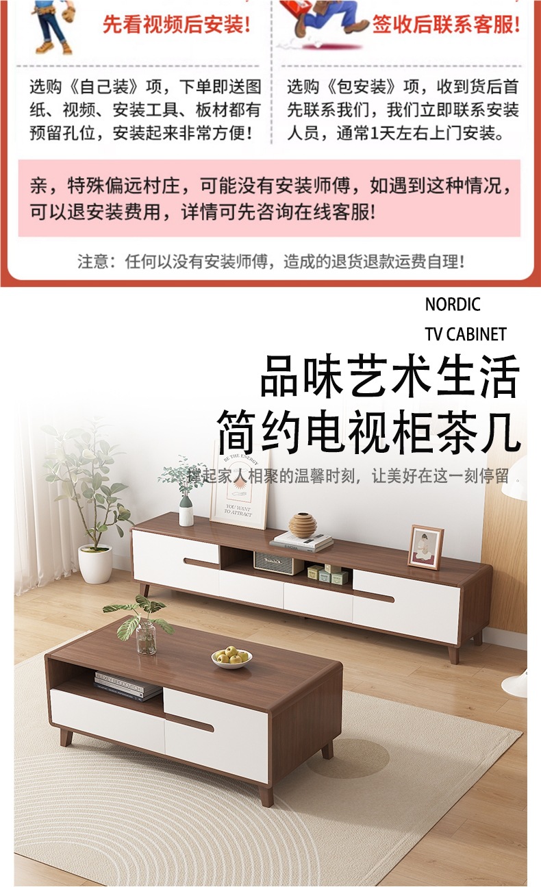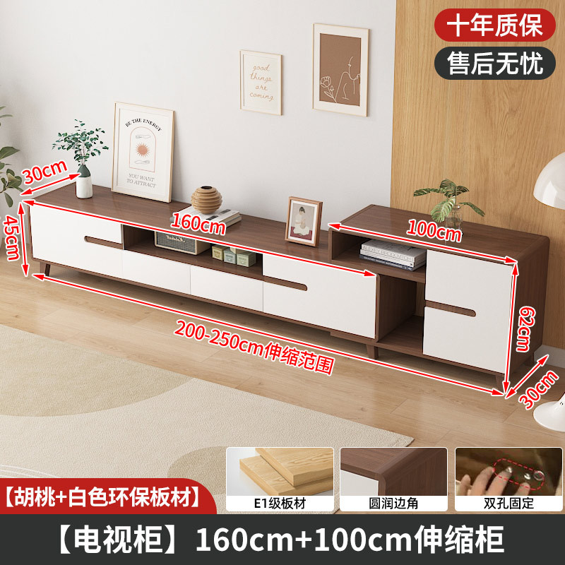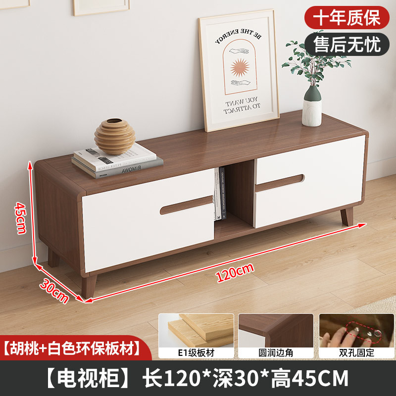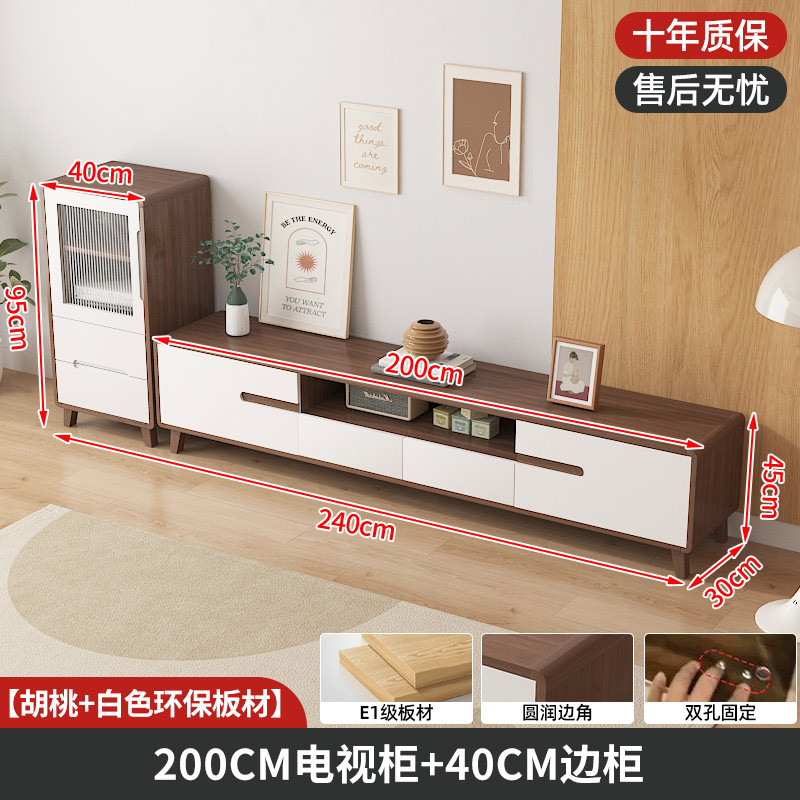 • 1.8m TV 캐비닛 + 40CM 사이드 캐비닛 + 1.2m 커피 테이블 [월넛 + 화이트]