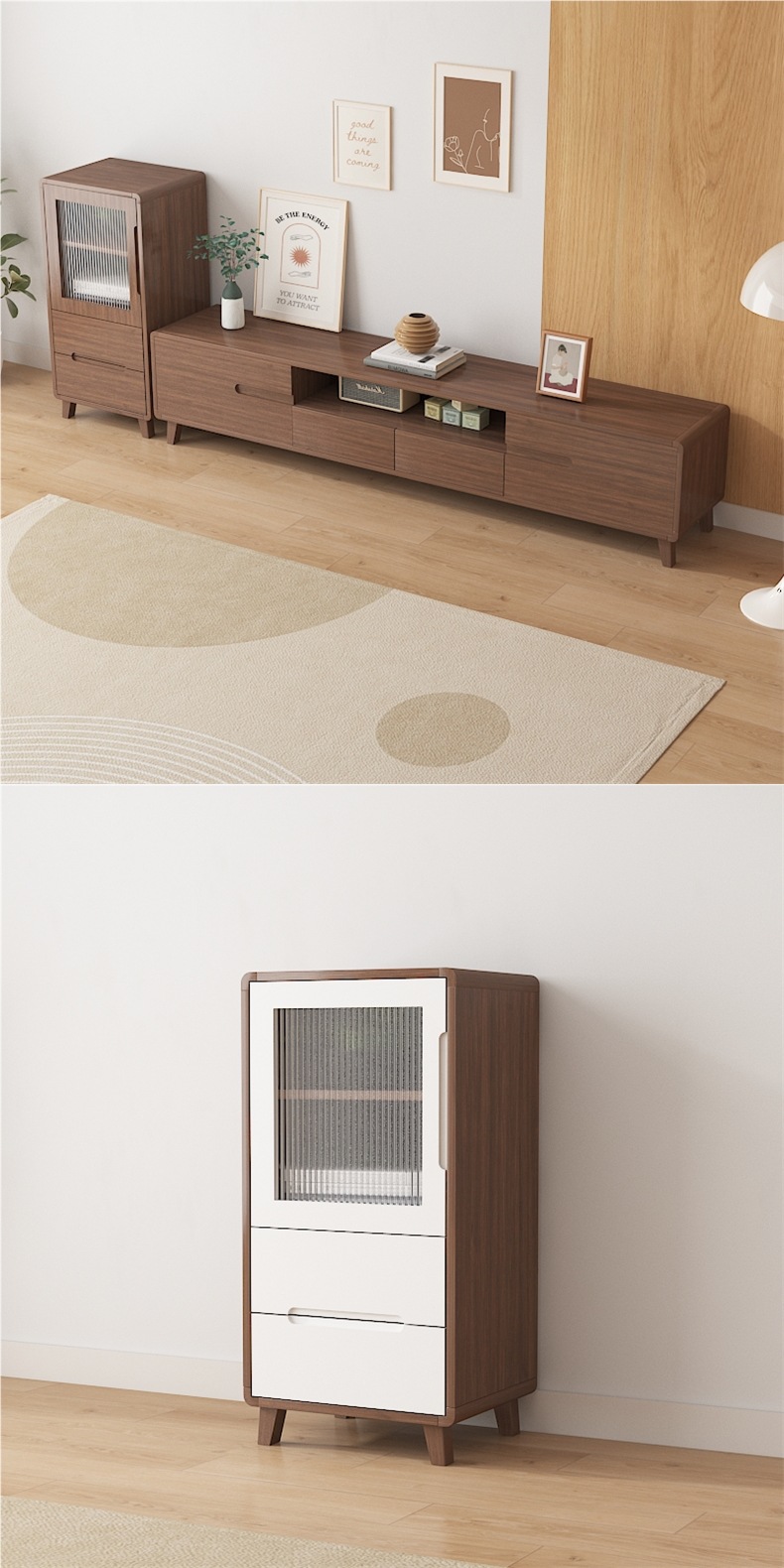 • 1.8m TV장 + 텔레스코픽 캐비닛 [월넛 + 화이트]
