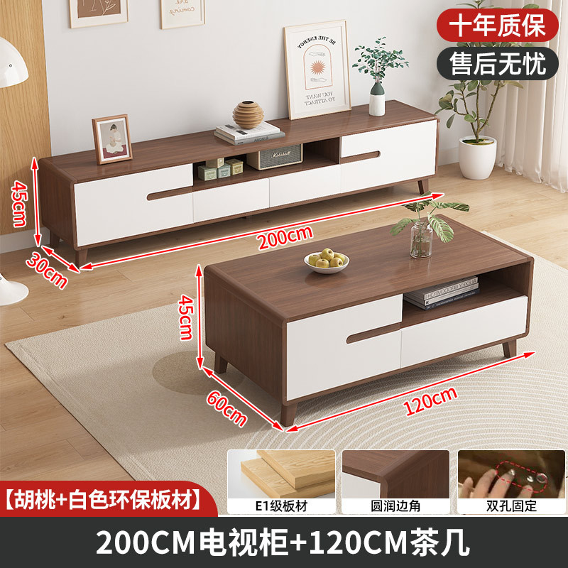 • 2m TV 캐비닛 + 1.2m 커피 테이블 [월넛 + 화이트]