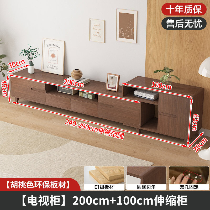• 2m TV 캐비닛 + 40CM 사이드 캐비닛 + 1.3m 커피 테이블 [월넛 색상]