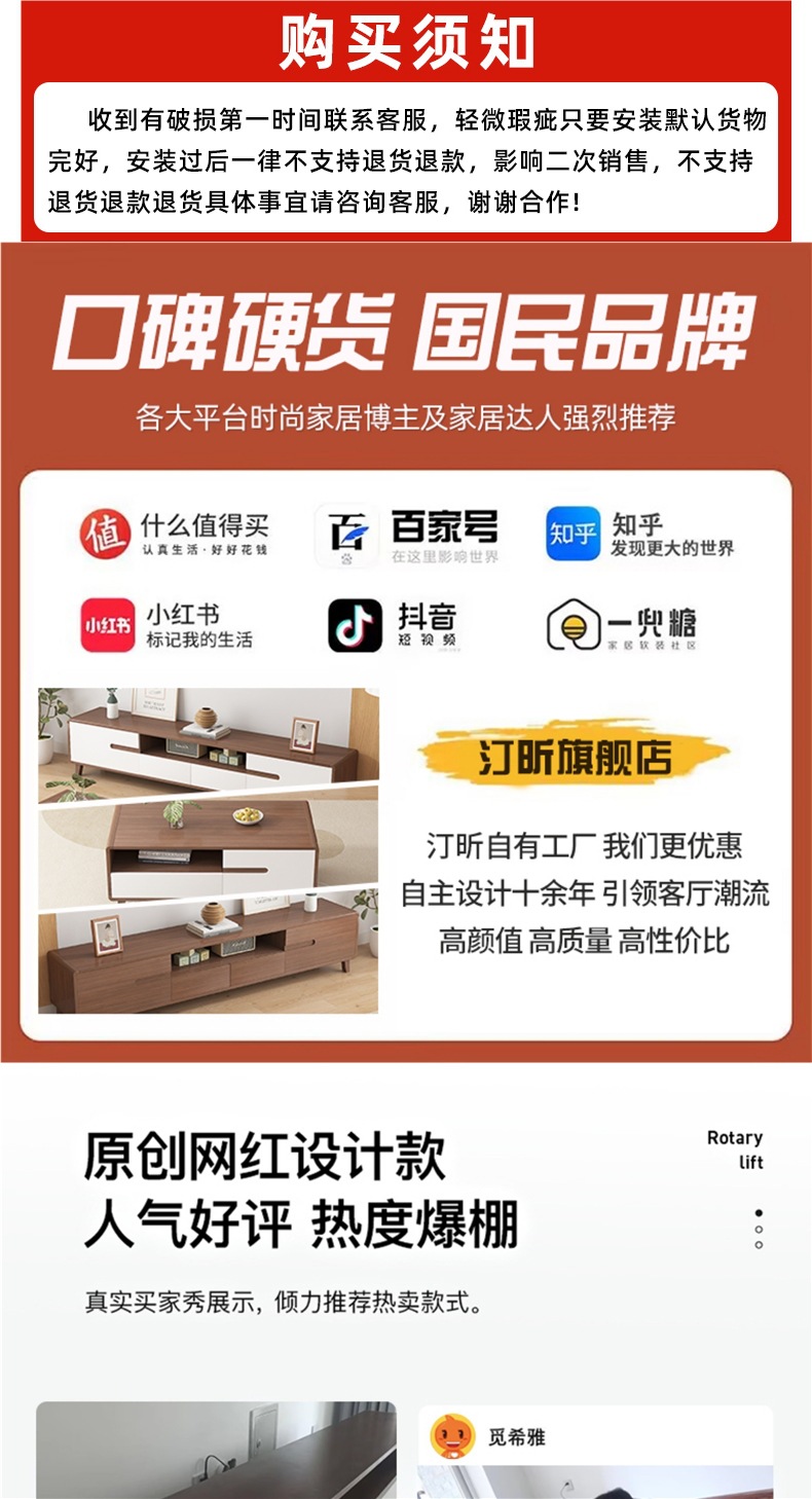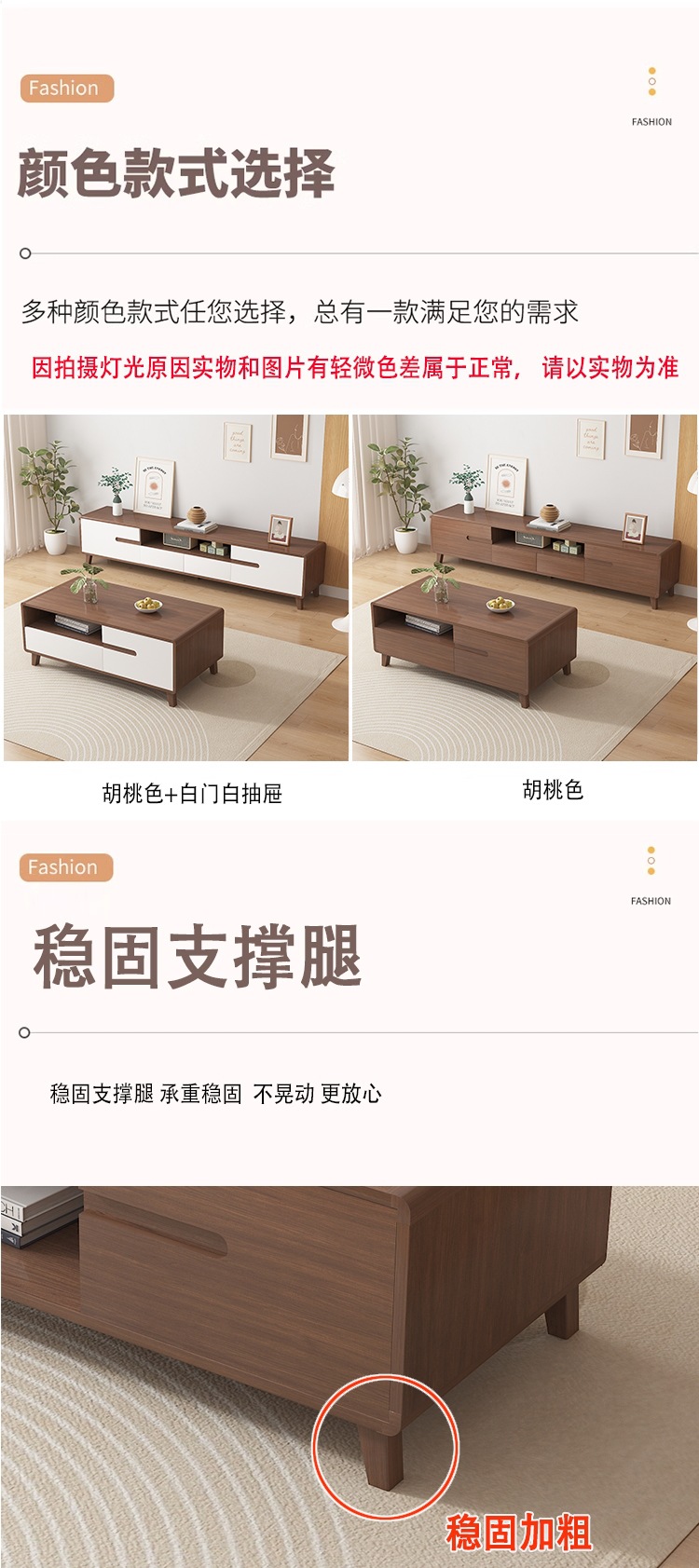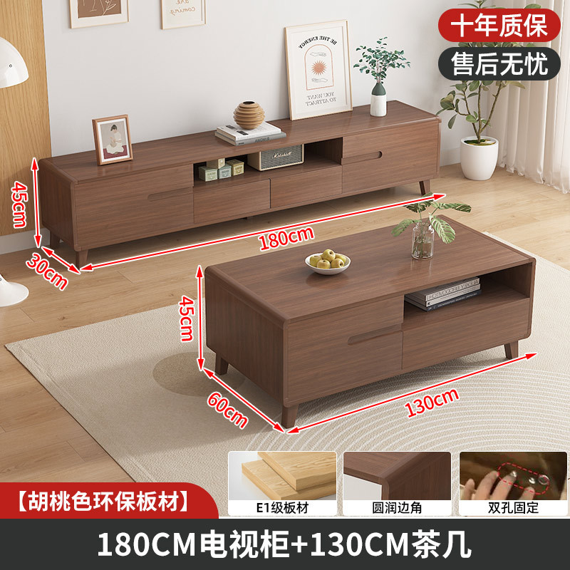 • 1.8m TV 캐비닛 + 40CM 사이드 캐비닛 + 1.3m 커피 테이블 [월넛 색상]