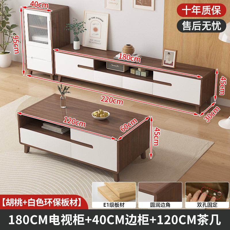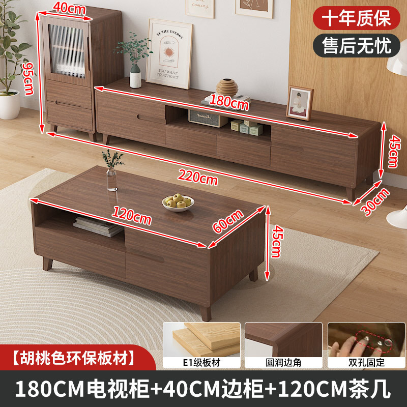 • 1.8m TV 캐비닛 + 40CM 사이드 캐비닛 + 1.2m 커피 테이블 [월넛 색상]