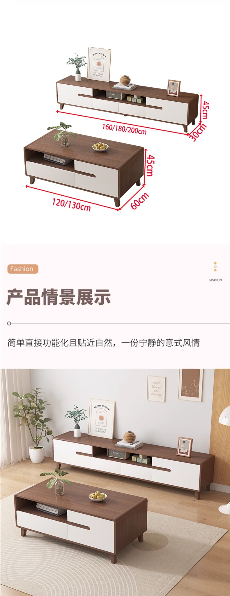 • 1.8m TV 캐비닛 + 1.2m 커피 테이블 [월넛 + 화이트]