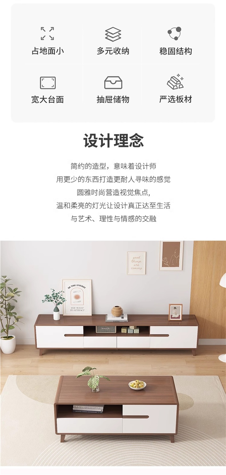 단단한 나무 TV 내각 커피 테이블 조합 가구 거실 작은 아파트 현대 간단한 새로운 중국 바닥 보관 캐비닛
