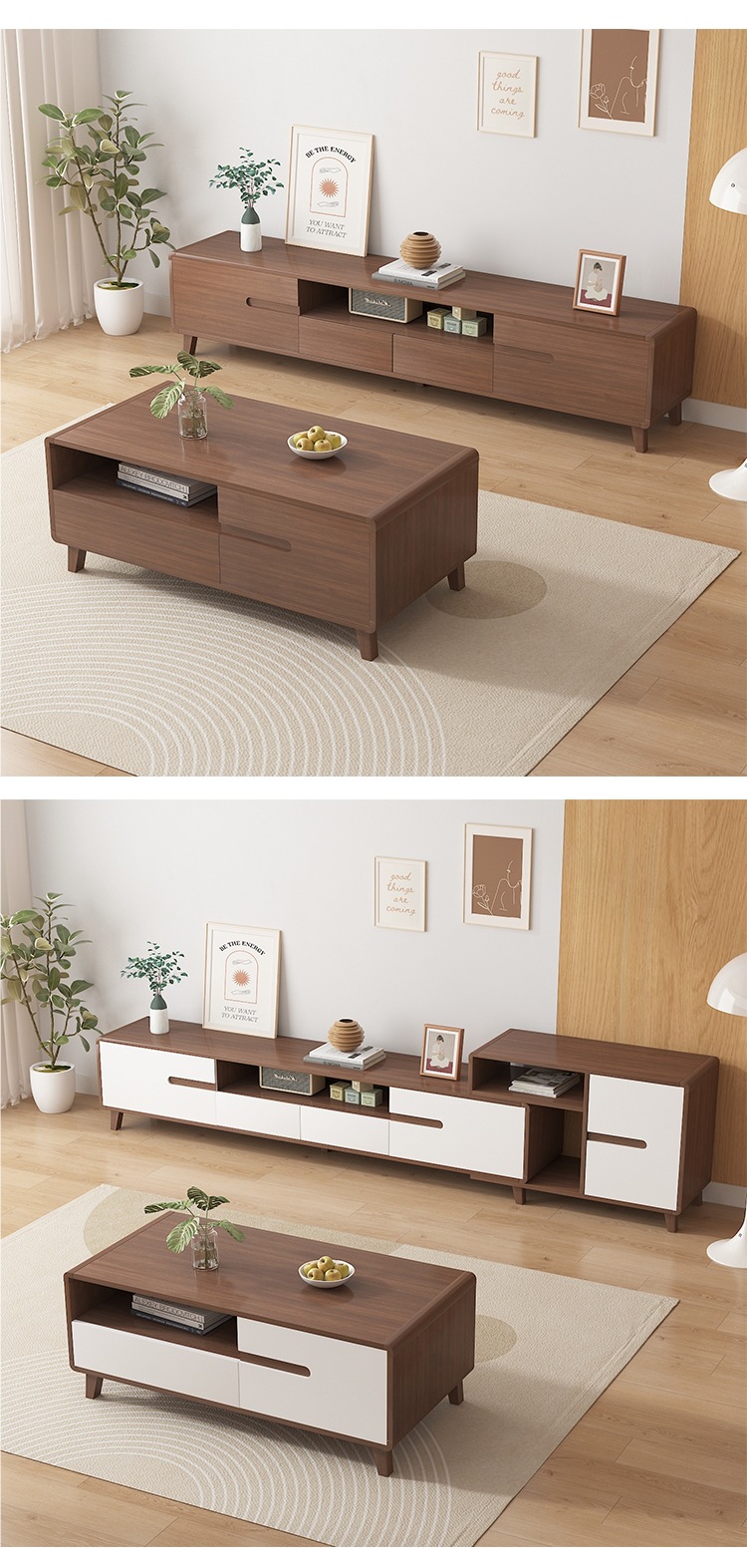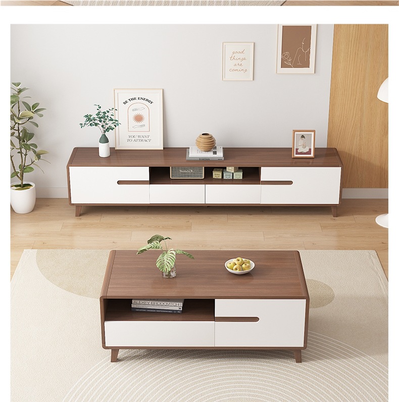 • 2m TV 캐비닛 + 1.3m 커피 테이블 [월넛 + 화이트]