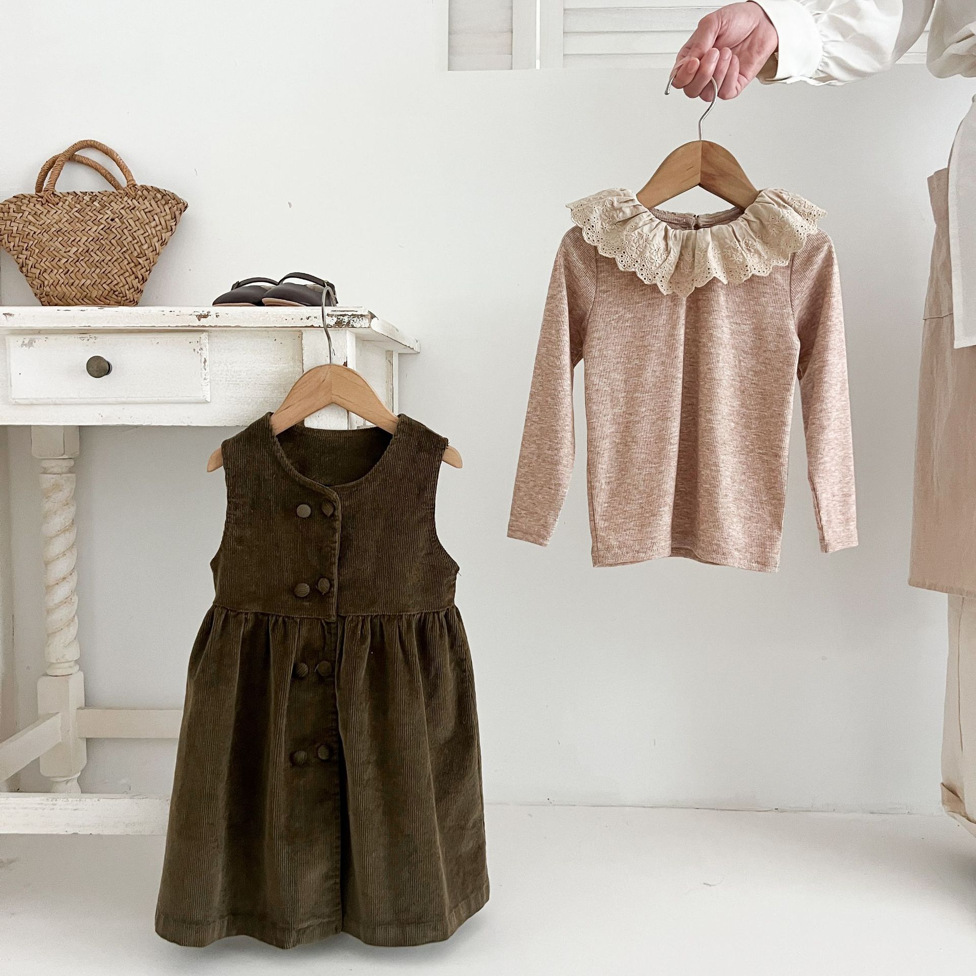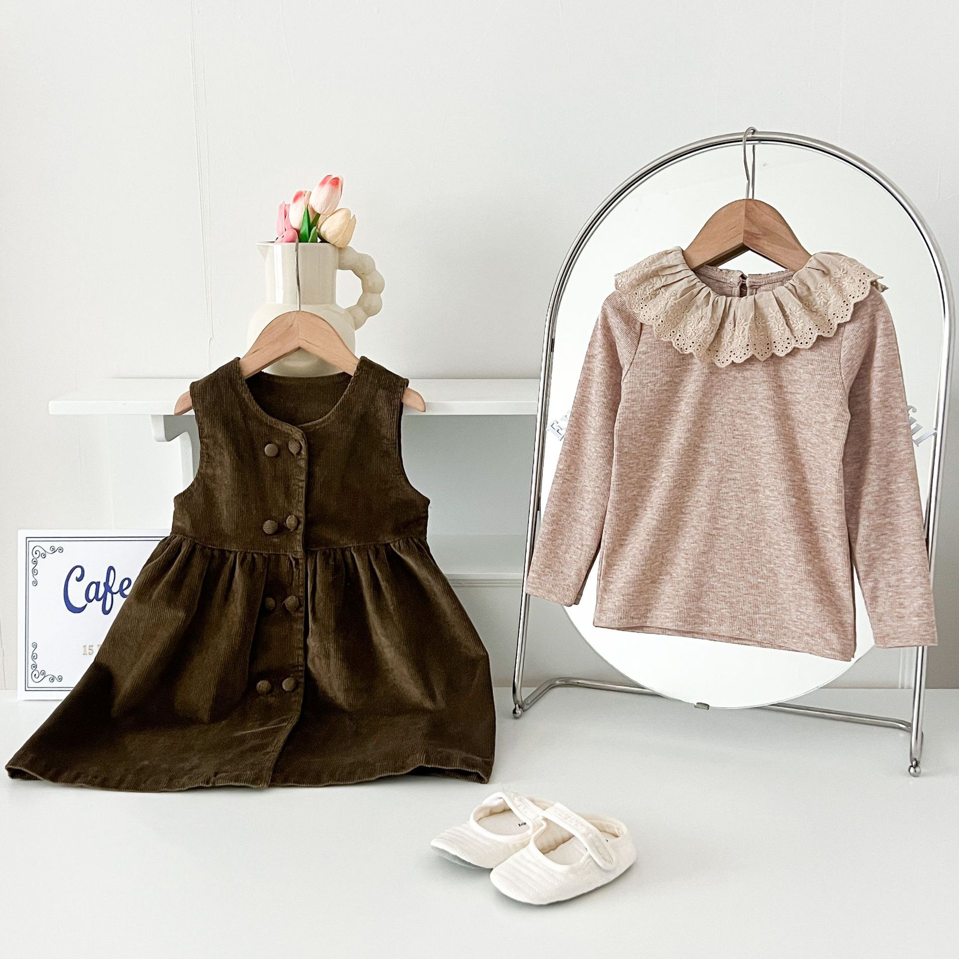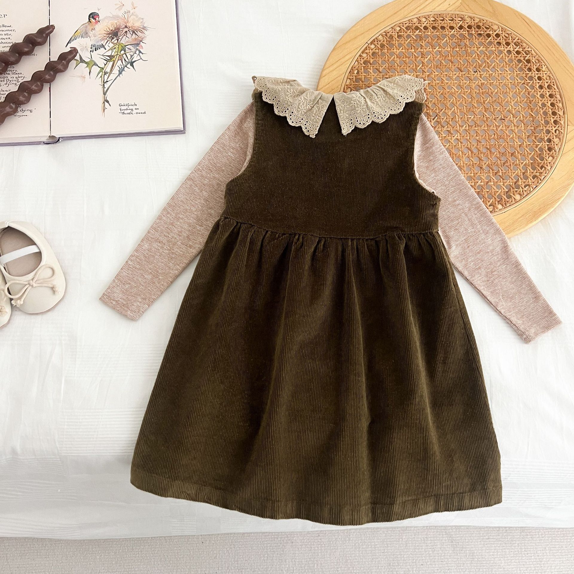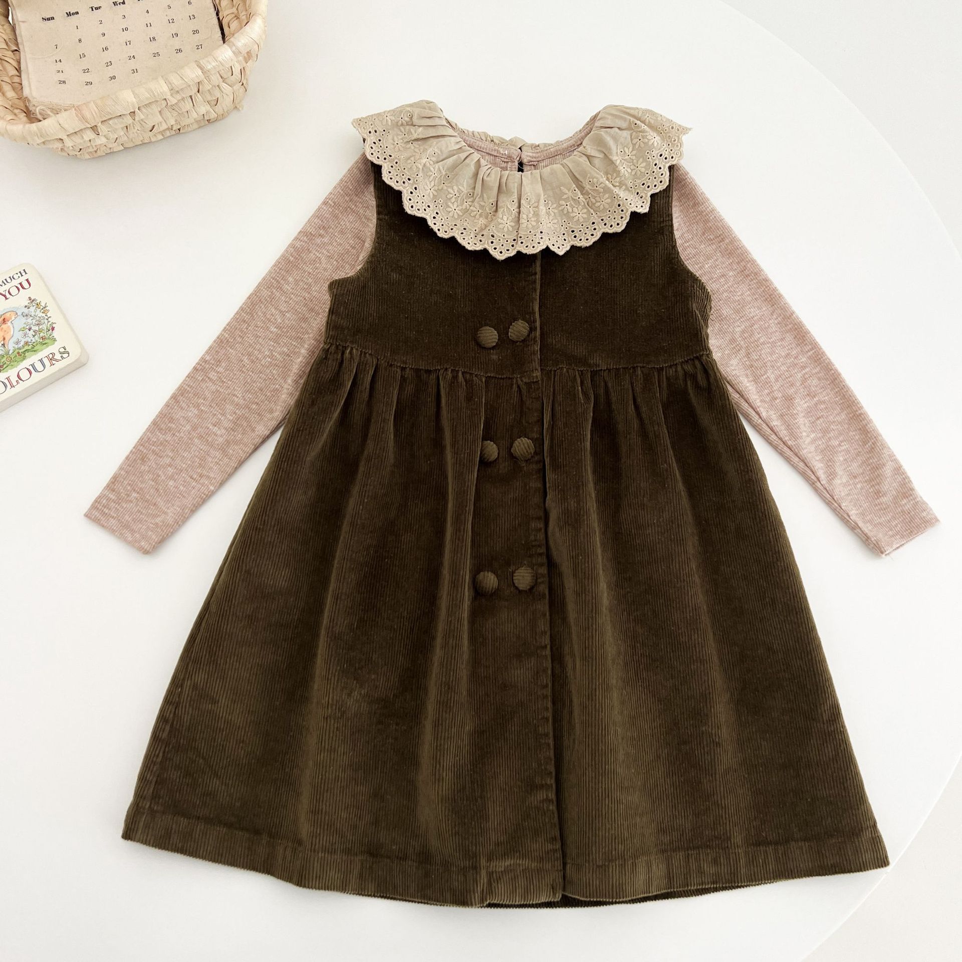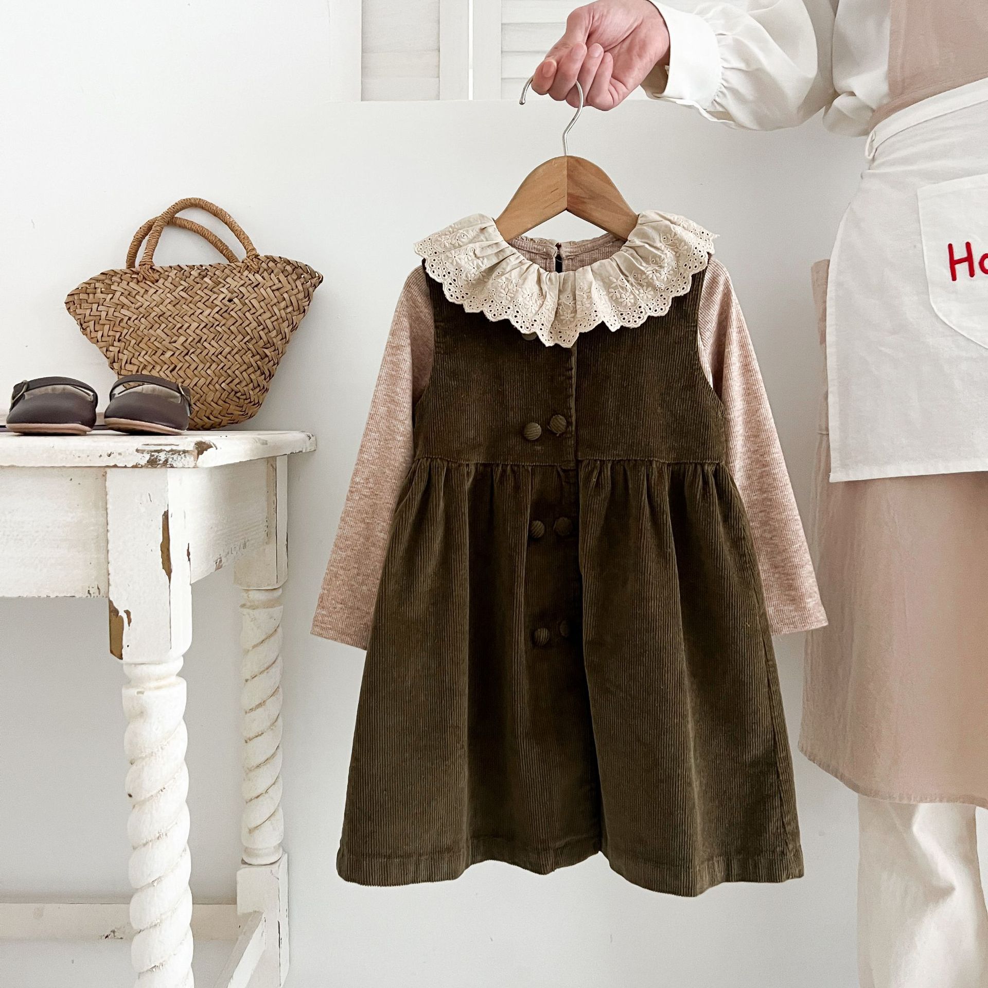 중소형 어린이 세트 아기 봄과 가을 복고풍 코듀로이 원피스 어린 소녀를위한 소녀 한국식 조끼 스커트