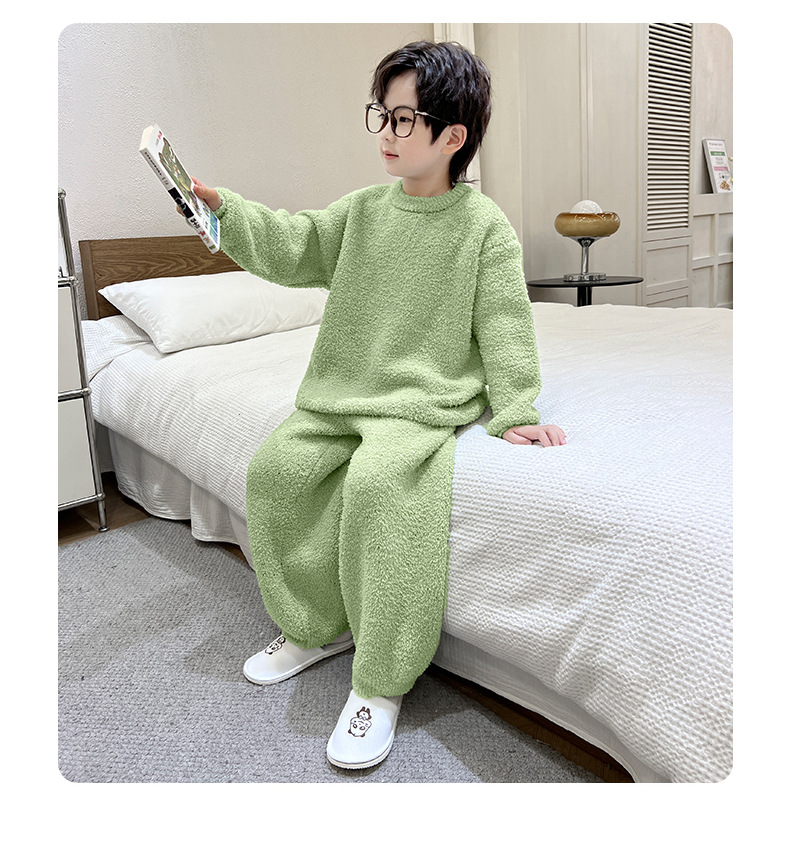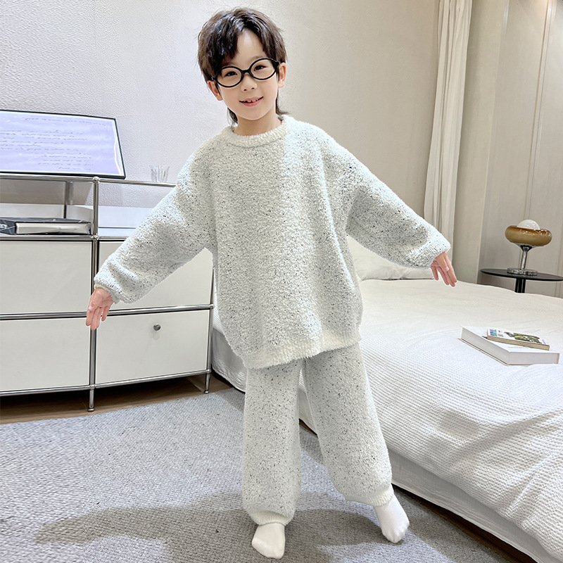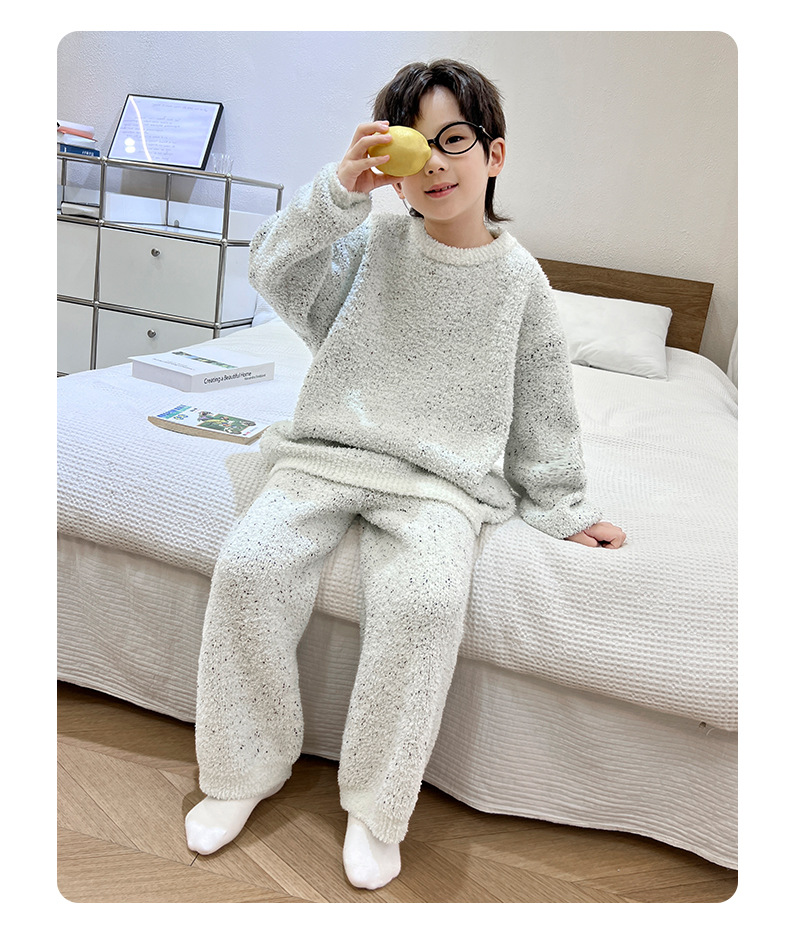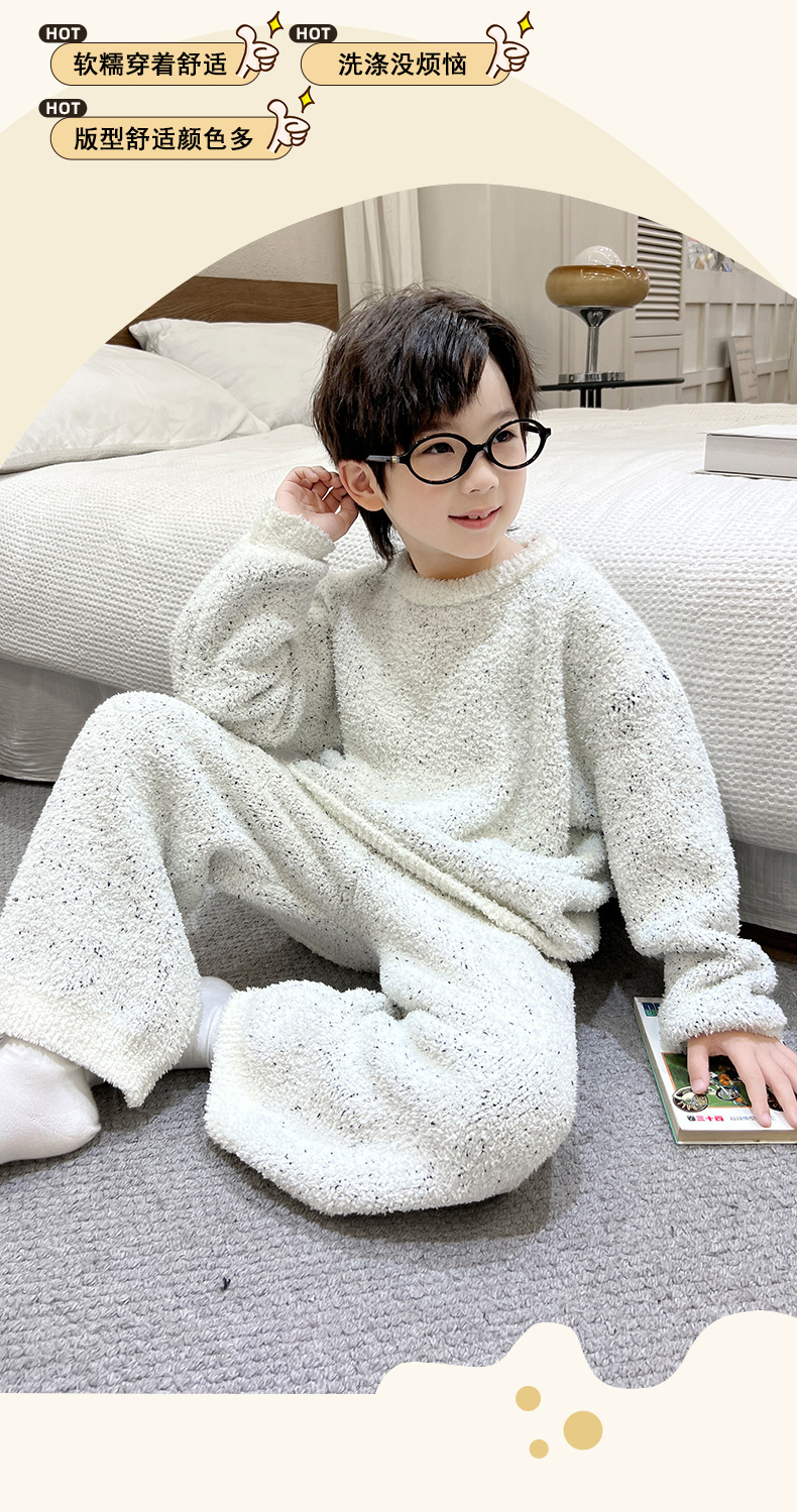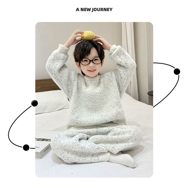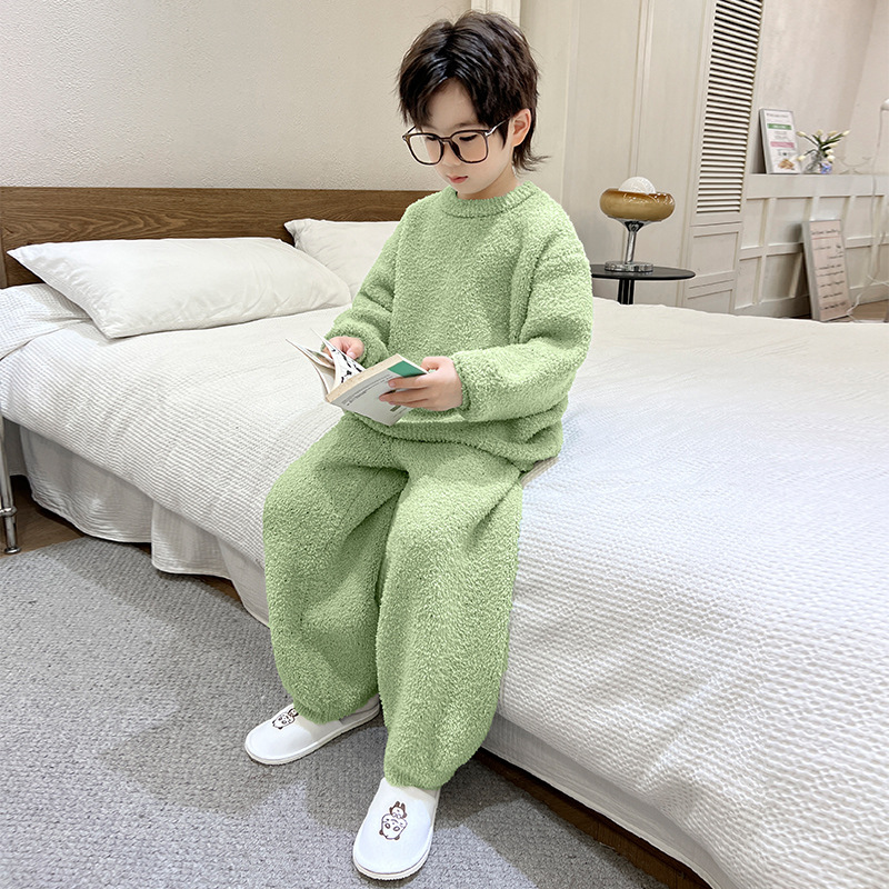 남아용 산호 벨벳 잠옷 어린이 홈웨어 가을 겨울 2025 신상 남아용 겨울 두꺼운 반벨벳 세트