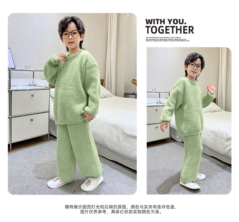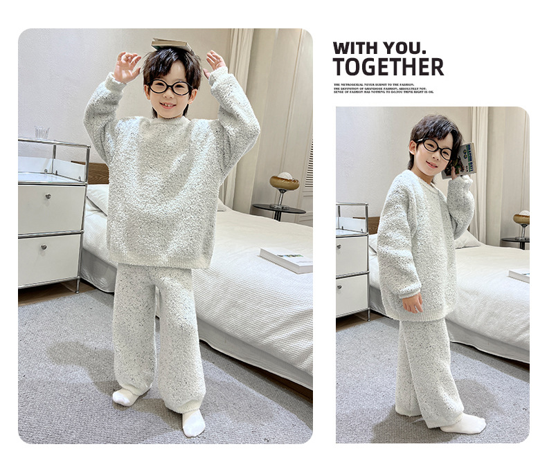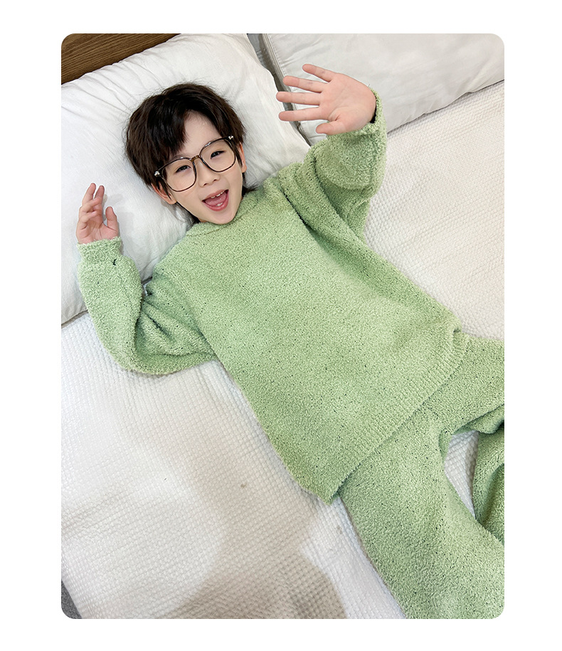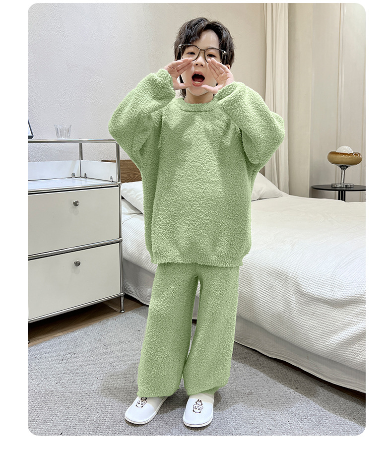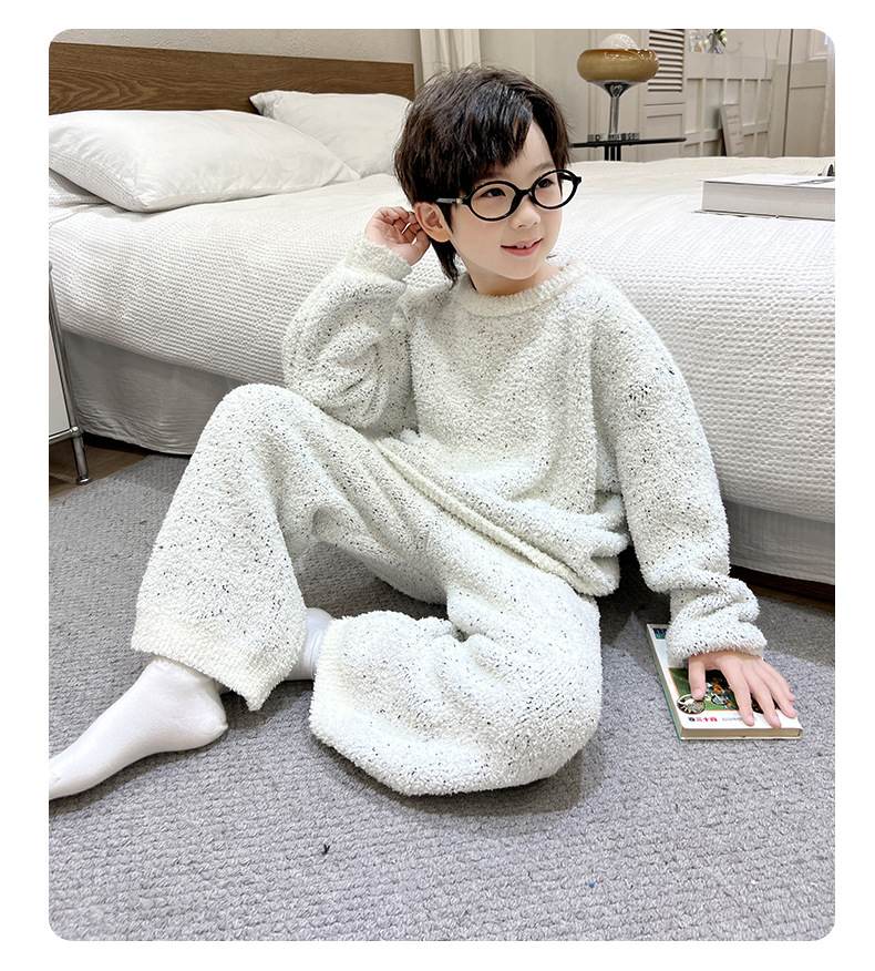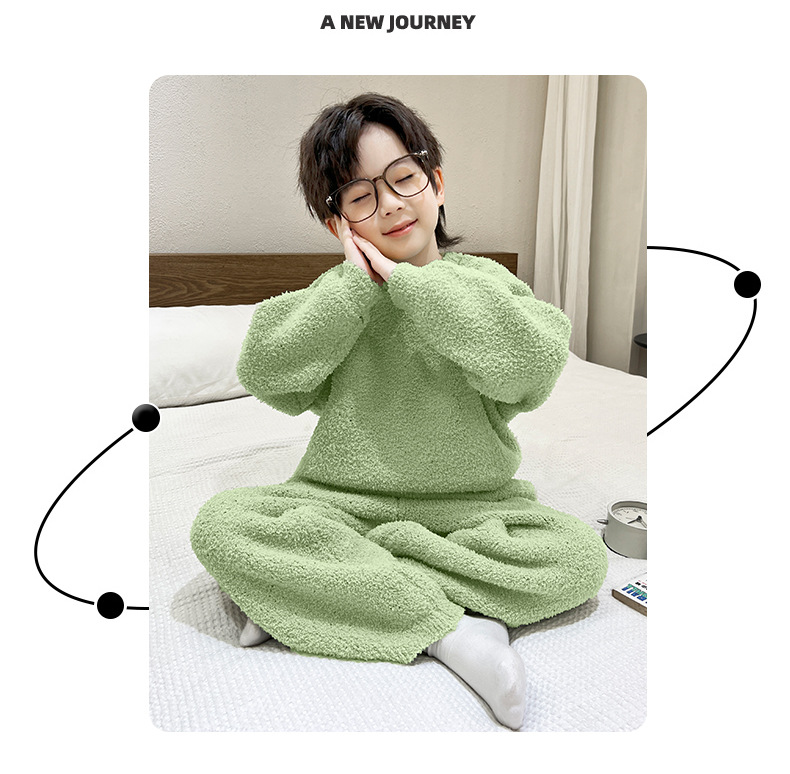 남아용 산호 벨벳 잠옷 어린이 홈웨어 가을 겨울 2025 신상 남아용 겨울 두꺼운 반벨벳 세트
