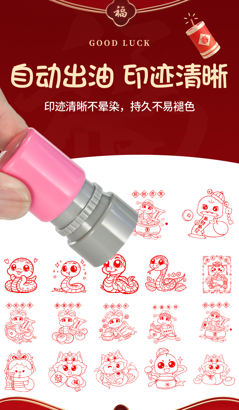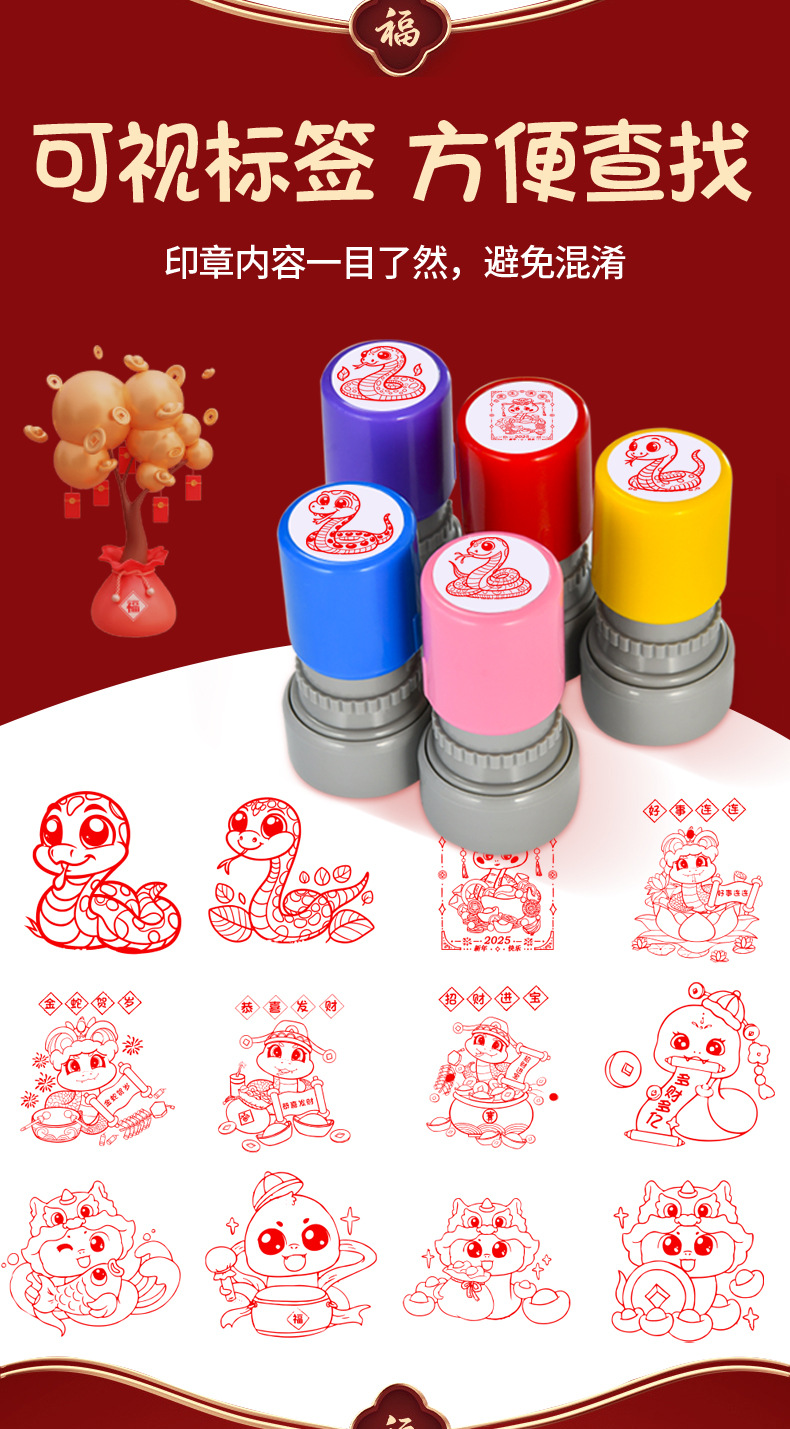 2025 년 스네이크 신년 씰은 새해를 축하합니다 모든 것이 골동품 손 계정에 좋습니다 아이들은 만화 귀여운 씰을 장려합니다스토어 가기