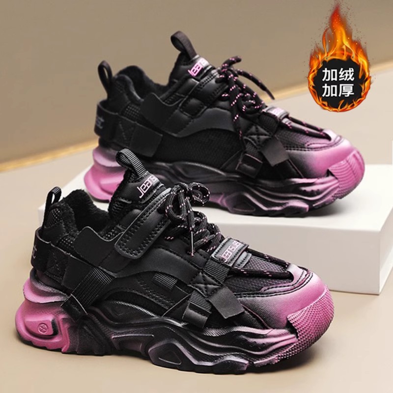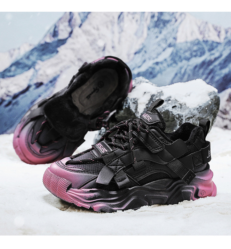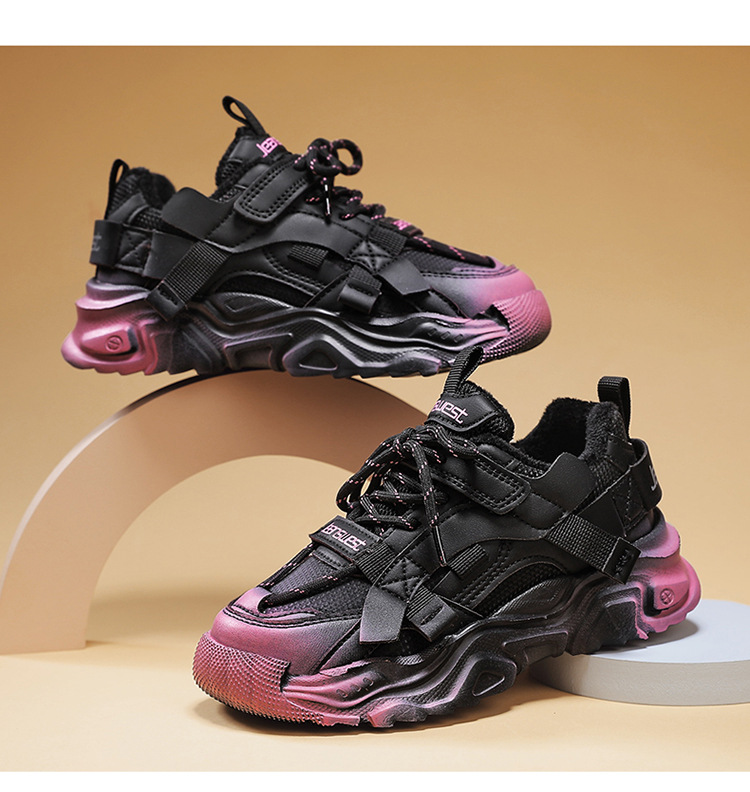 국경 더러운 저항하는 여자 신발 2024 겨울 새 기모 스포츠 면화 어린이 부드러운 밑창 소녀의 아버지 신발