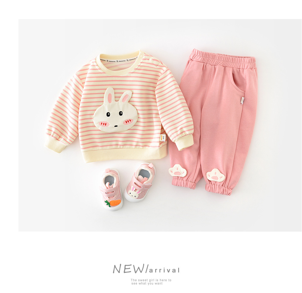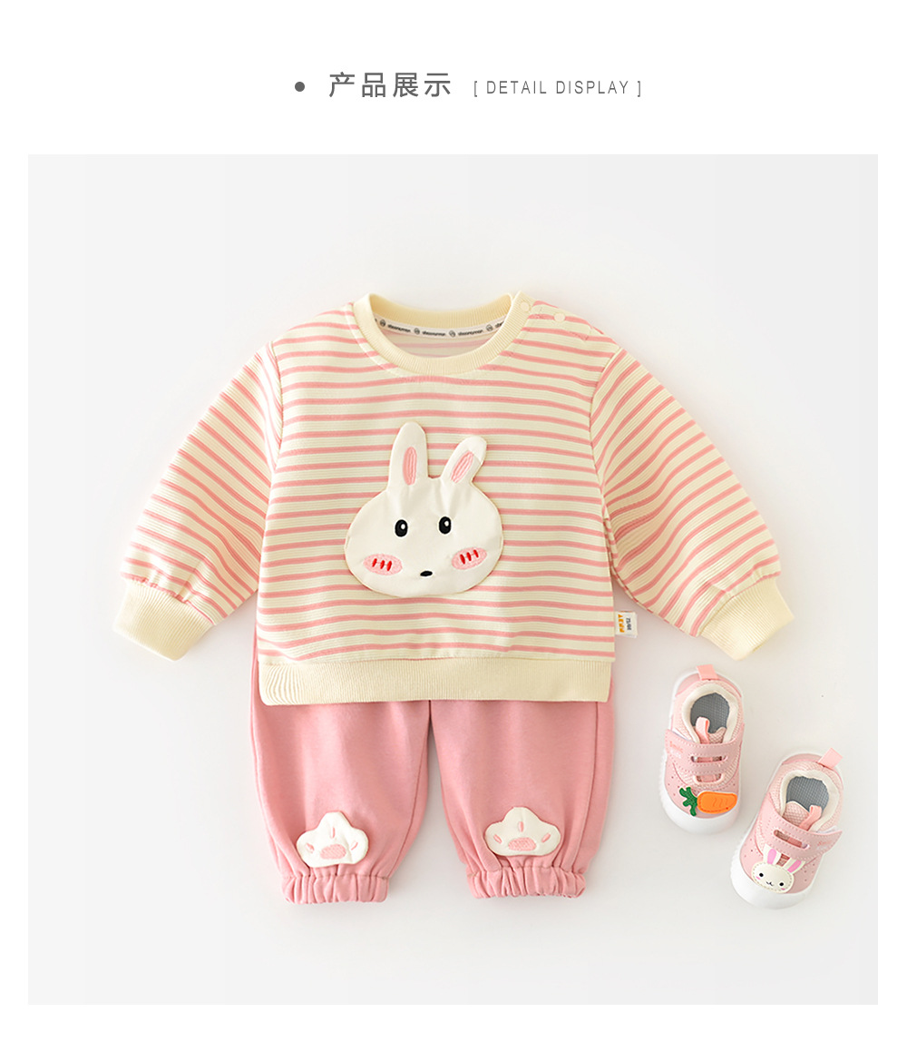신생아 핑크 줄무늬 만화 슈트 봄과 가을 새로운 스타일 유아 아기 토끼 인형 투피스 세트 51009스토어 가기