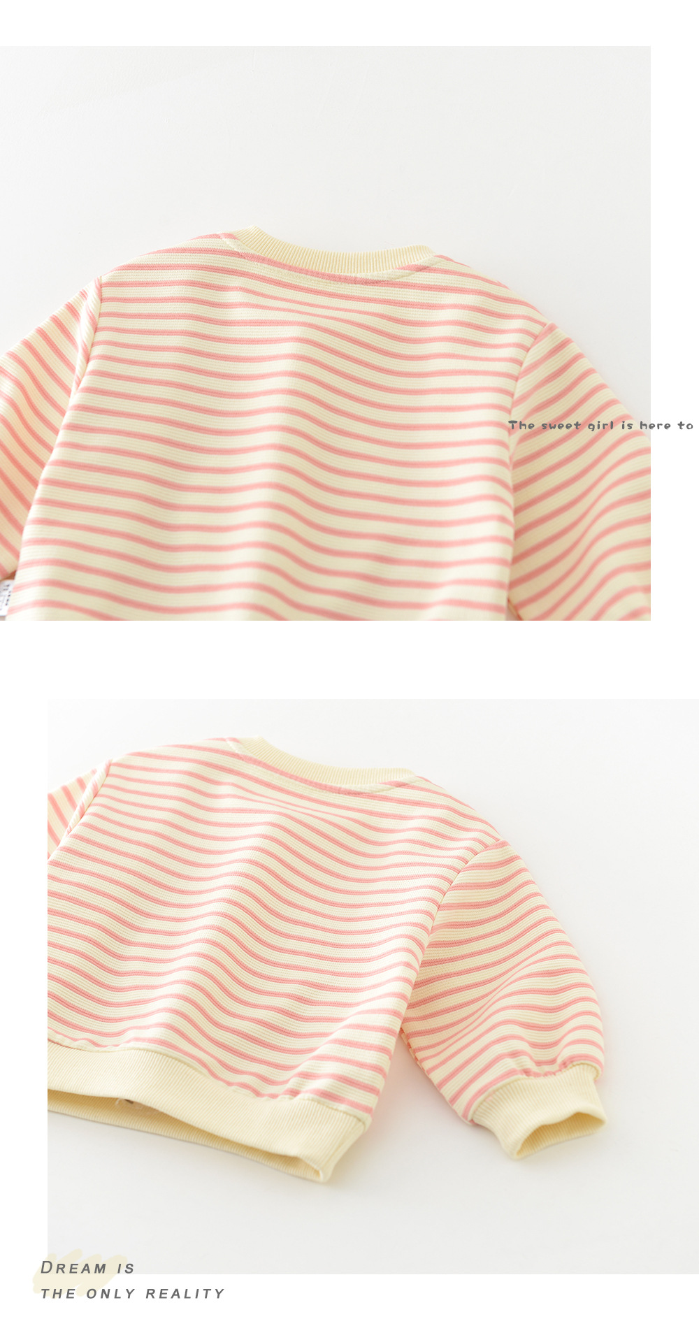 신생아 핑크 줄무늬 만화 슈트 봄과 가을 새로운 스타일 유아 아기 토끼 인형 투피스 세트 51009