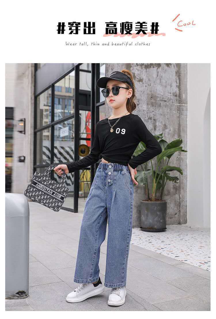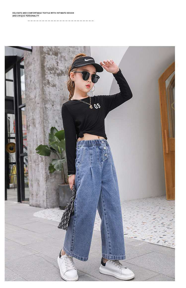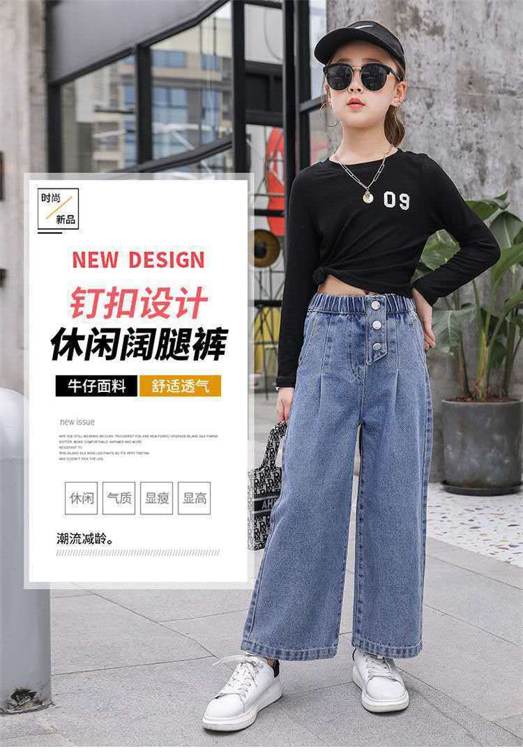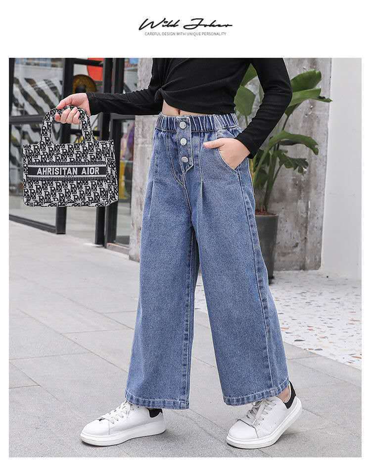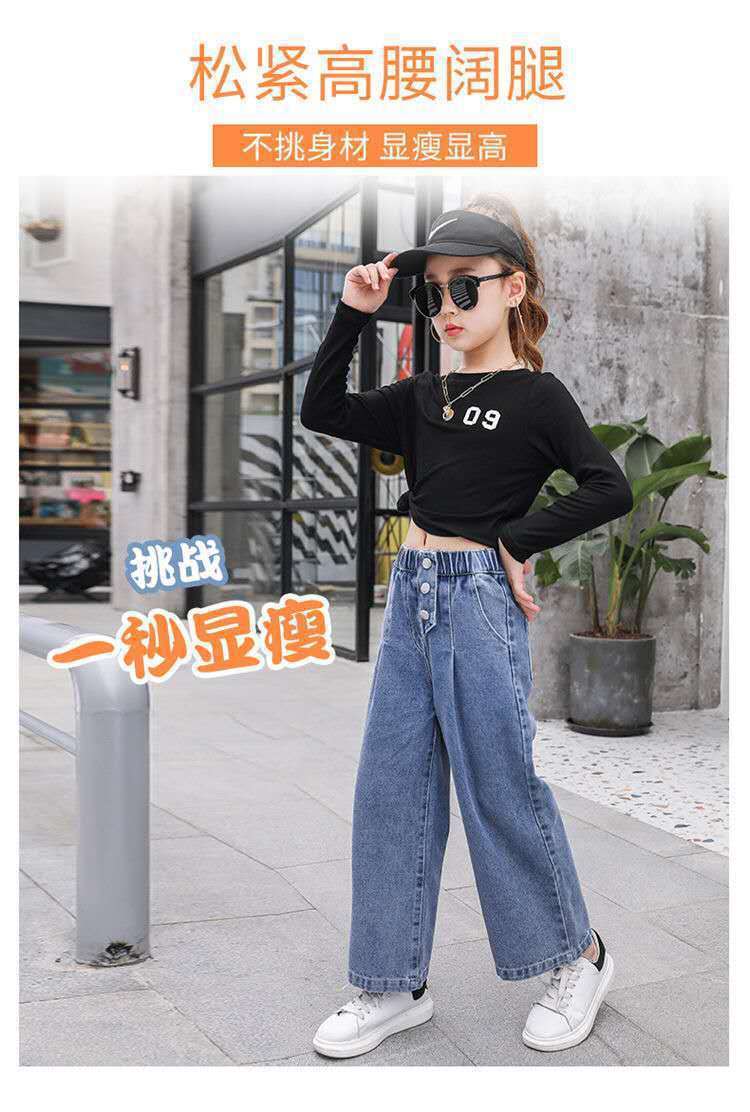 대외 무역 도매 어린이 바지 2024 소녀 청바지 봄과 가을 큰 어린이 레저 한국 어린이 소녀 넓은 다리 바지스토어 가기
