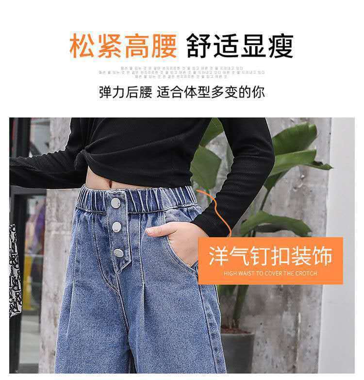 대외 무역 도매 어린이 바지 2024 소녀 청바지 봄과 가을 큰 어린이 레저 한국 어린이 소녀 넓은 다리 바지