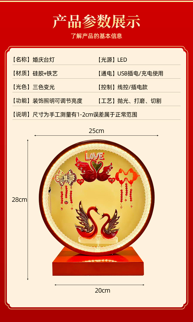 새로운 웨딩 선물 중국 웨딩 테이블 램프 신부 Dowry 램프 침실 장식 침실 램프 로맨틱 선물 웨딩 램프