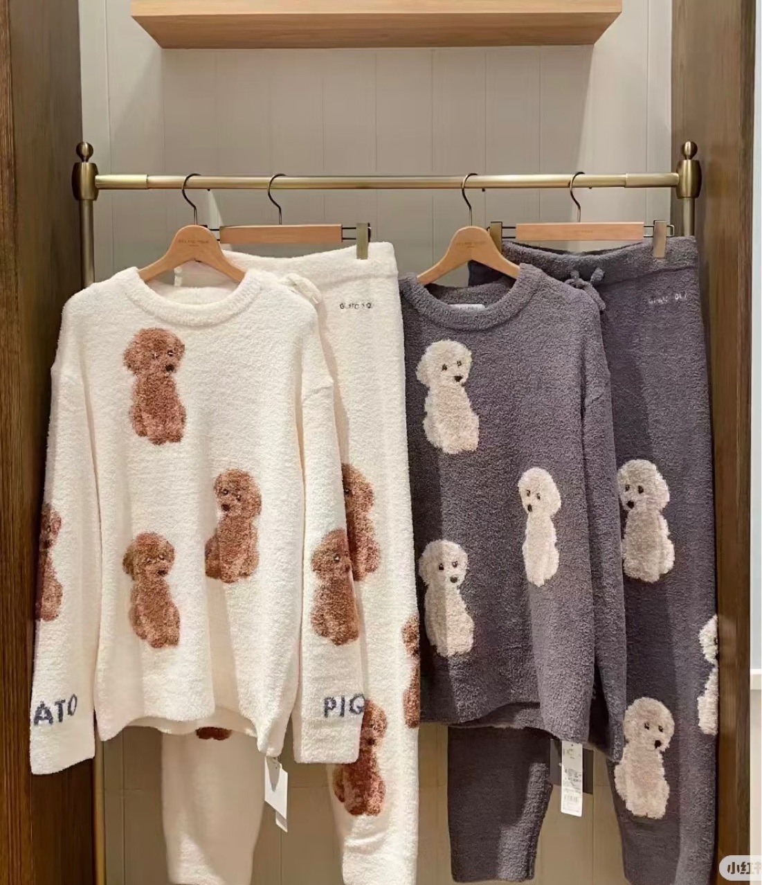 Gp 하프 벨벳 홈 의류 새로운 잠옷 여성 가을과 겨울 기모 두꺼운 전체 길이 곰 둥근 목 느슨한 세트스토어 가기