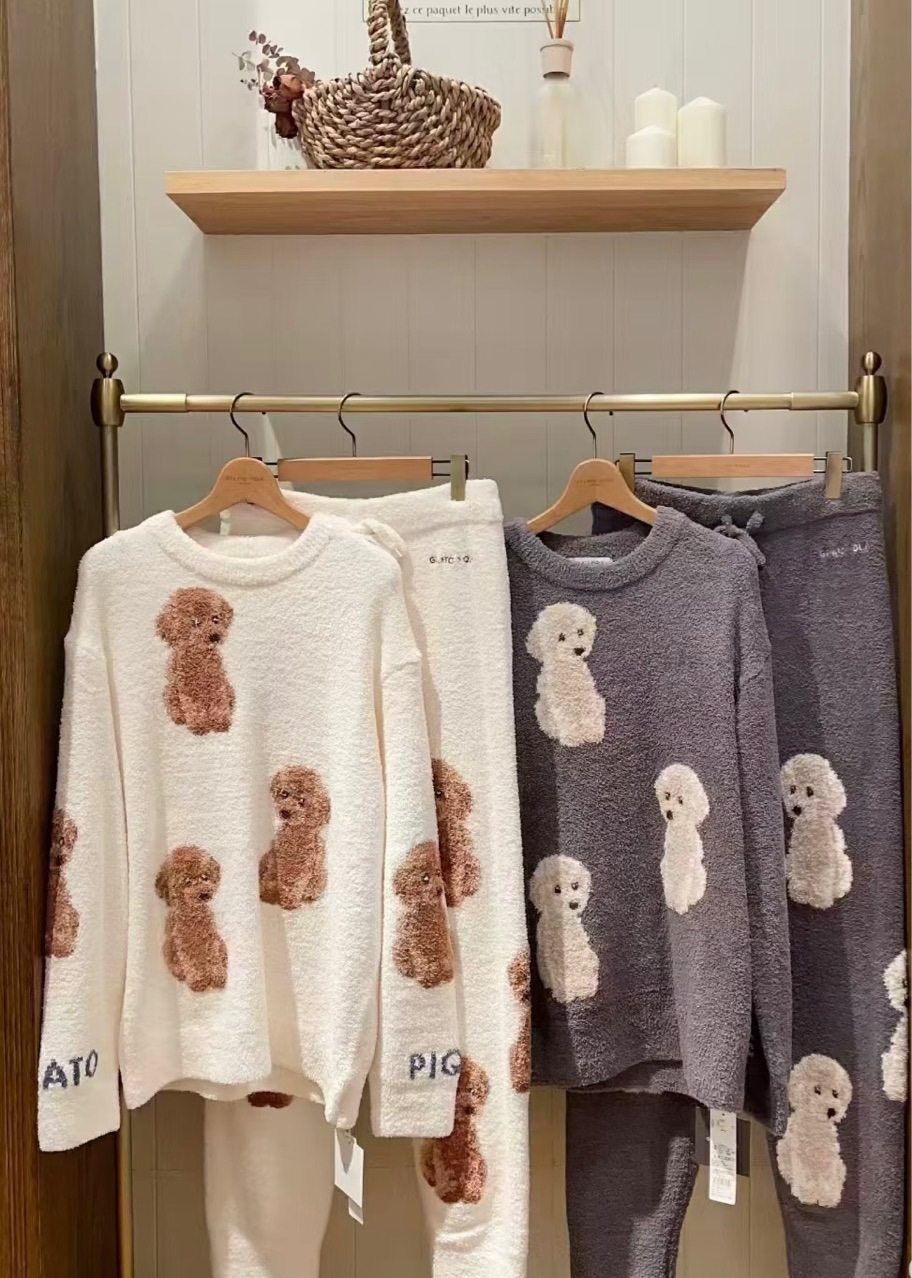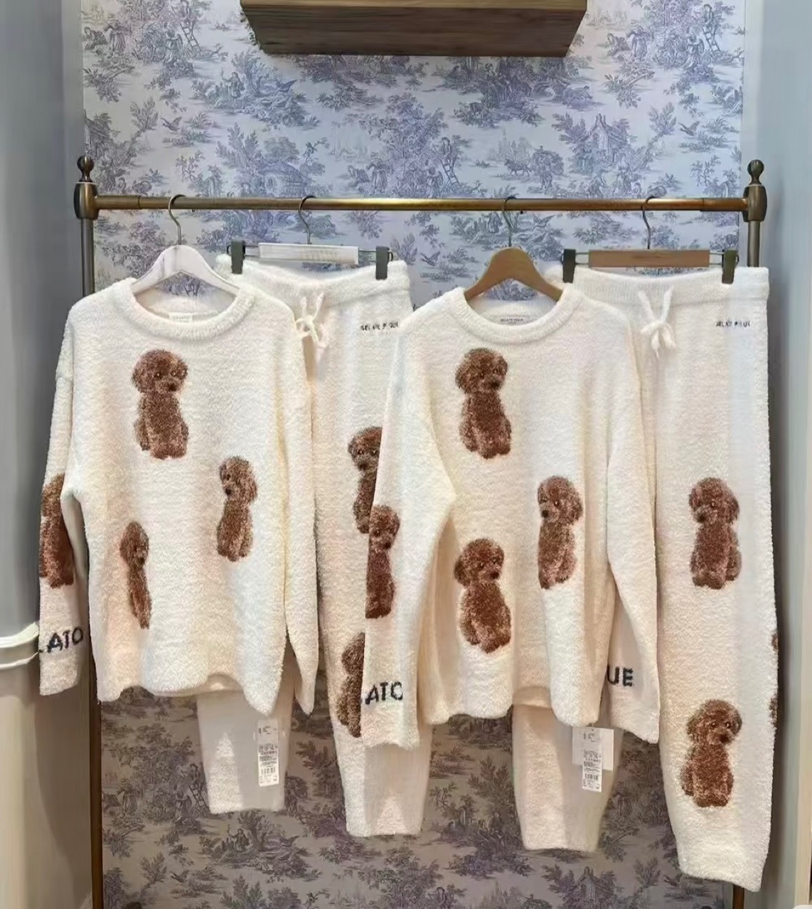 Gp 하프 벨벳 홈 의류 새로운 잠옷 여성 가을과 겨울 기모 두꺼운 전체 길이 곰 둥근 목 느슨한 세트