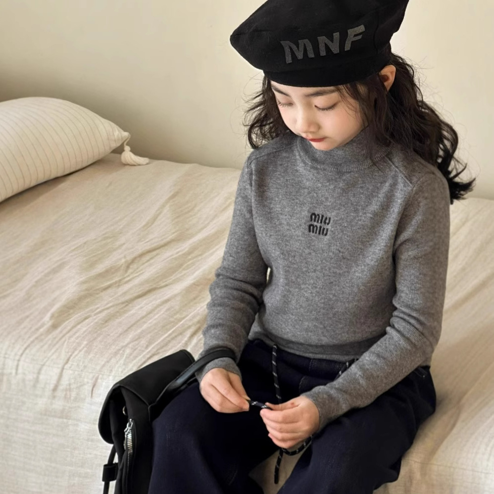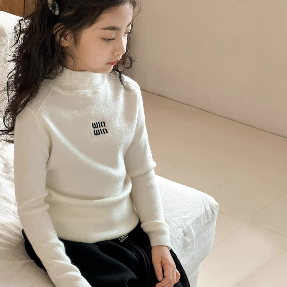 여아용 스웨터 2025 가을 겨울 신상 아동용 스타일리시 니트웨어 겨울용 중대형 아동용 하프 터틀넥 이너웨어