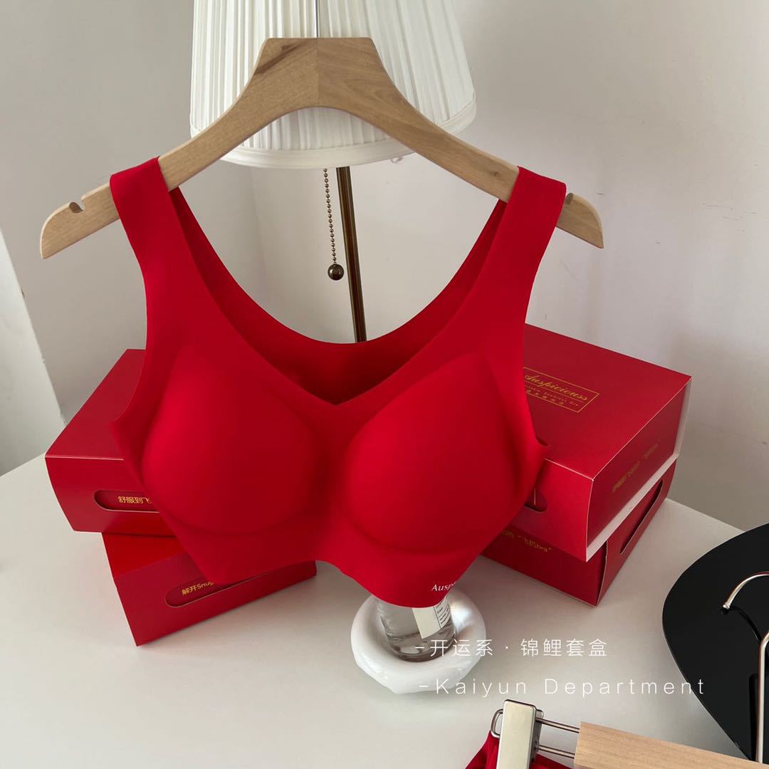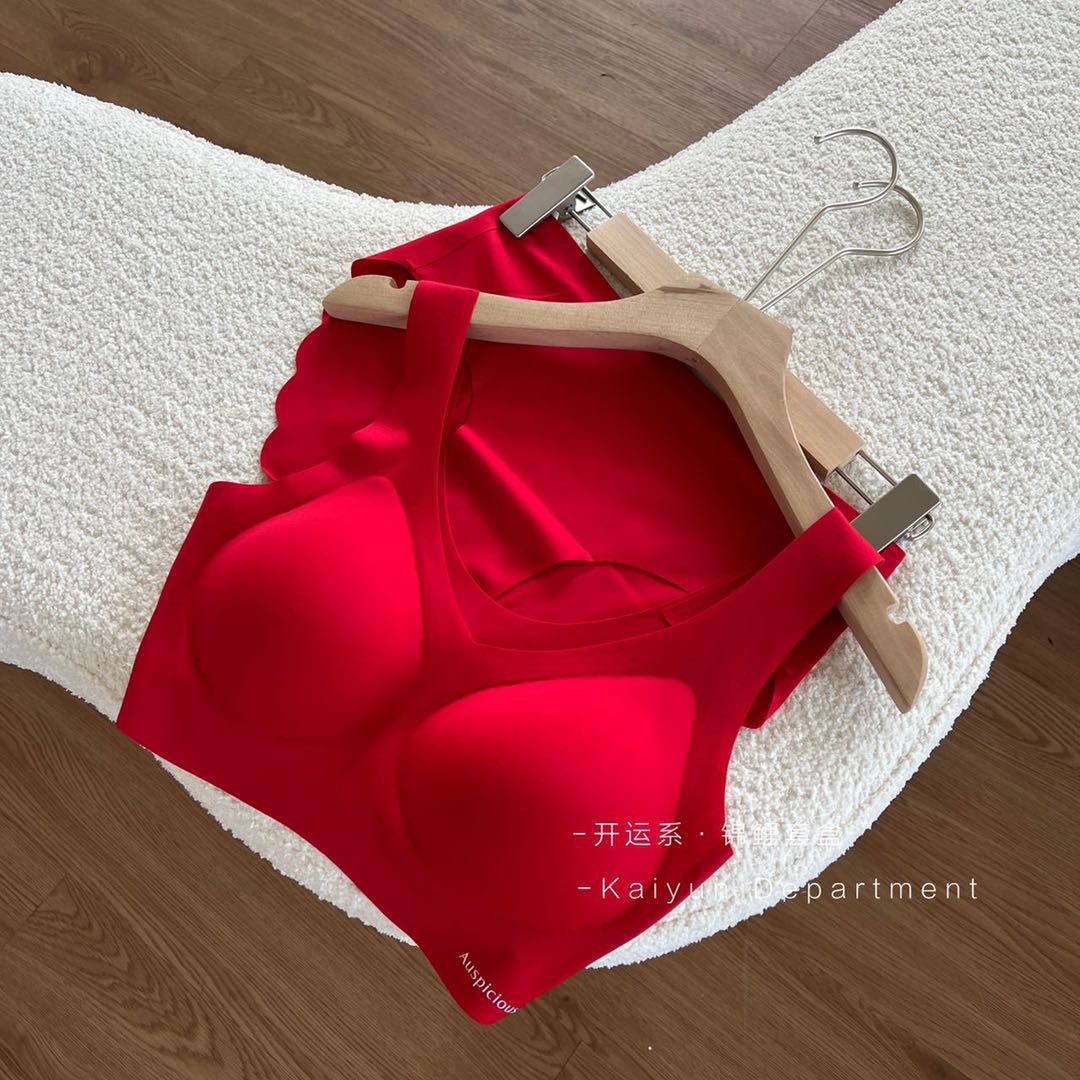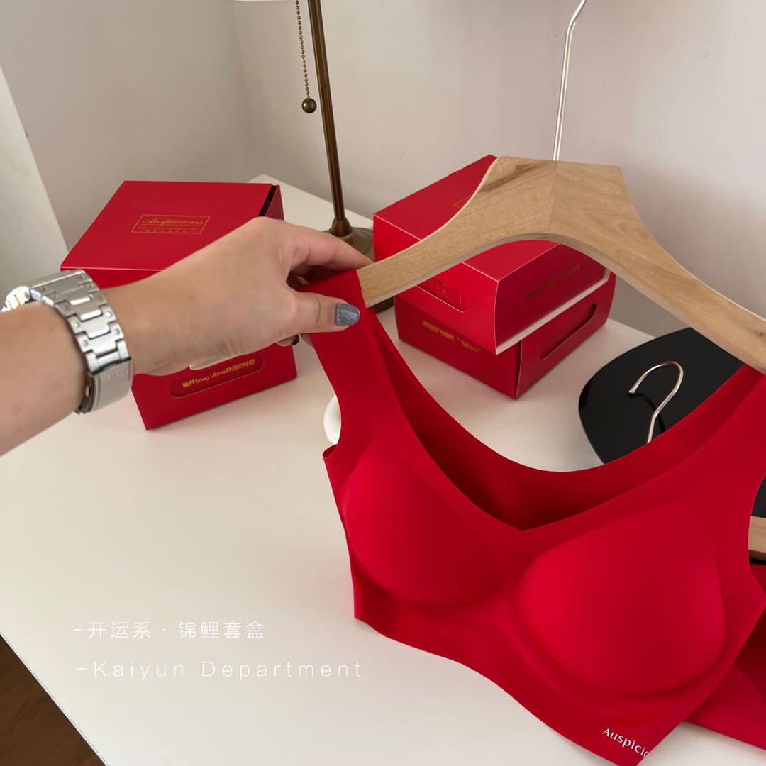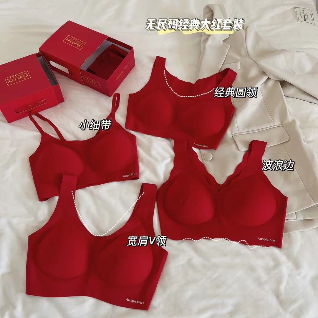2024 새로운 레드 세트 클래식 조끼 타입 스틸 링 없음 마크 속옷 벤밍 니안 레드 세트 브라