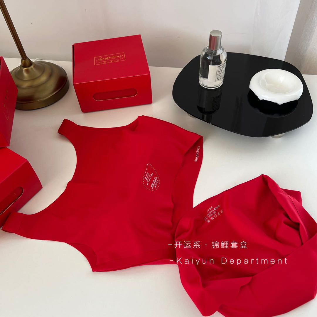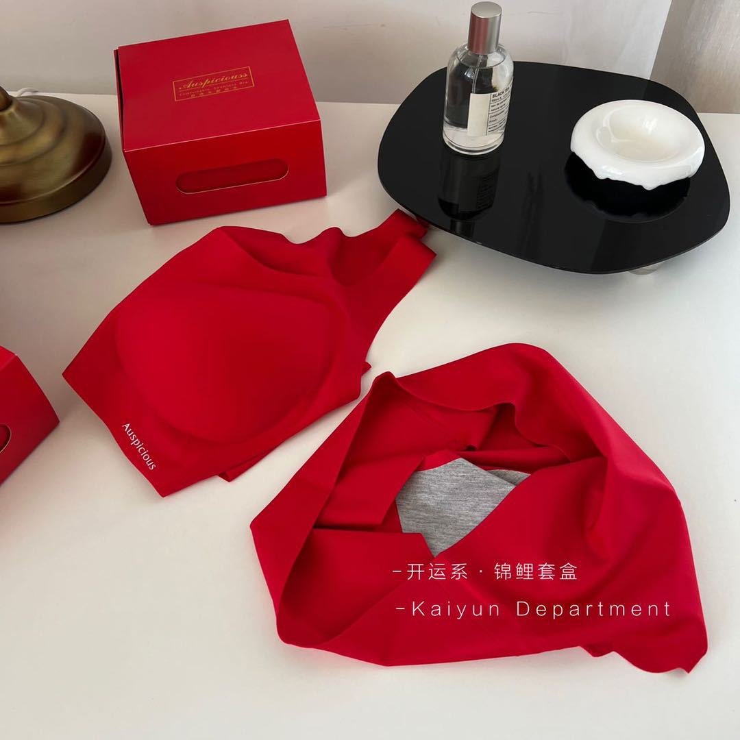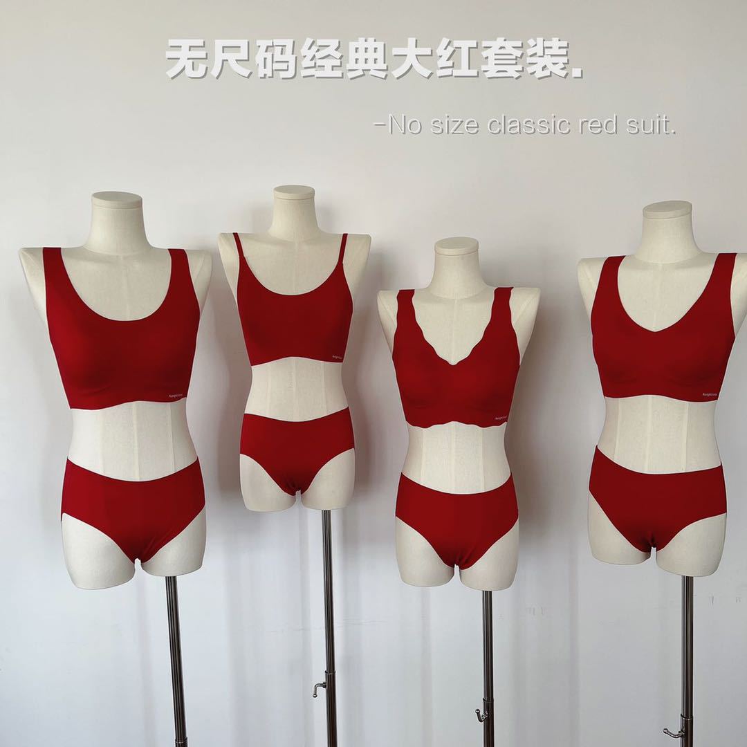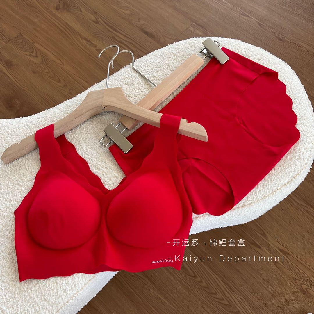 2024 새로운 레드 세트 클래식 조끼 타입 스틸 링 없음 마크 속옷 벤밍 니안 레드 세트 브라
