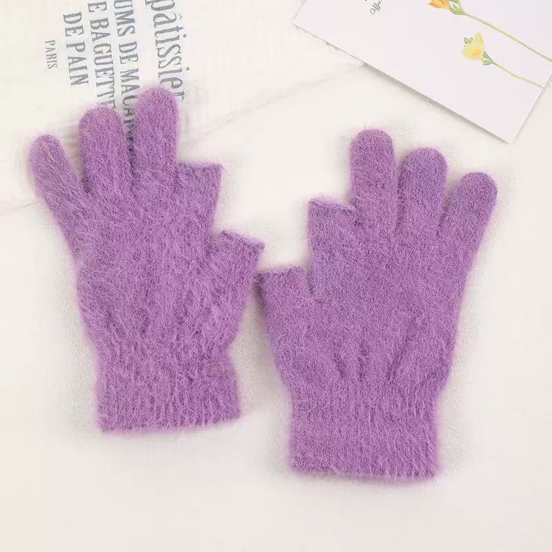 겨울 노출 투핑거 따뜻한 터치 스크린 기모 하프 핑거 장갑 학생들 사이클링을위한 귀여운 한국식 봉제 냉간 손가락 누출