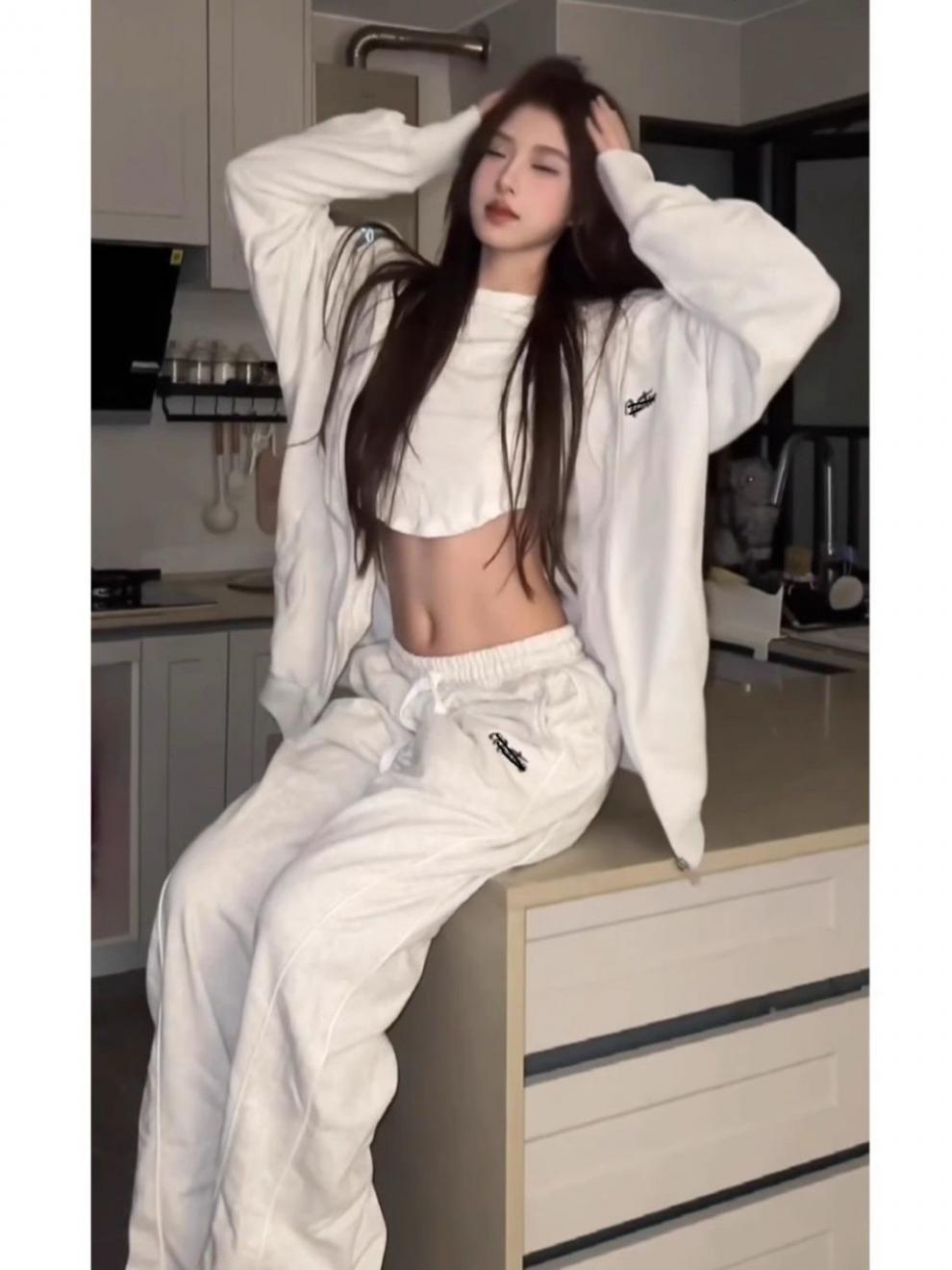 스웨트 셔츠 스포츠 세트 여성 봄과 가을 학생 슬리밍 플러스 사이즈 느슨한 캐주얼 게으른 투피스 BF 러닝 세트스토어 가기