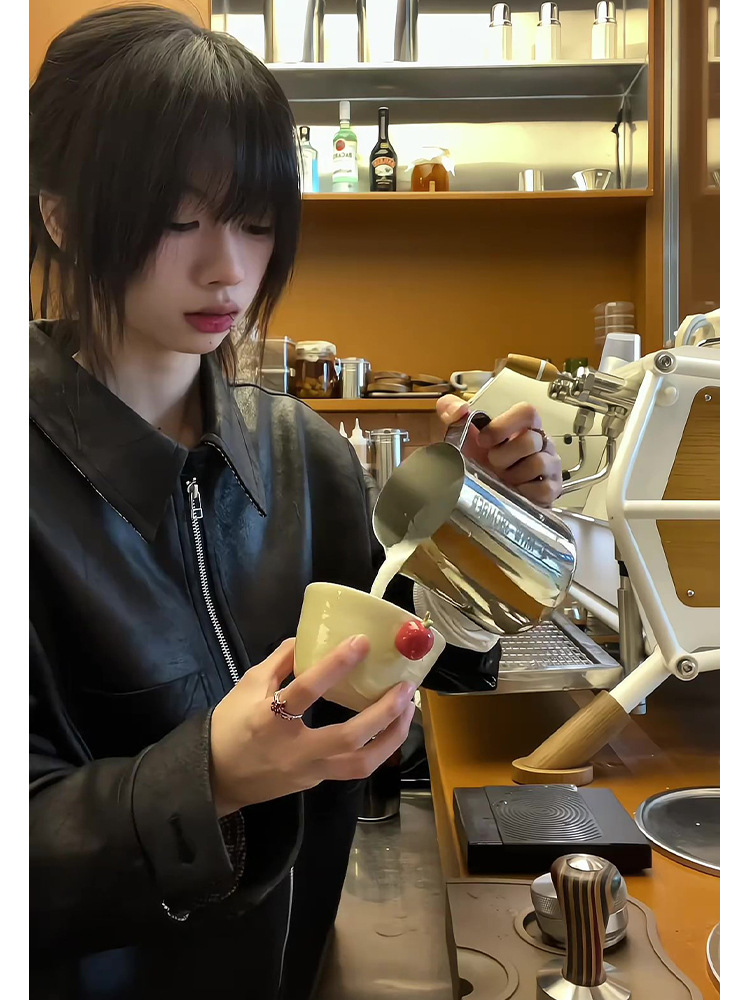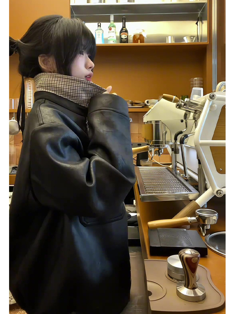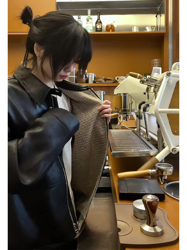 Deserto American Style Retro Houndstooth Pu 가죽 짧은 재킷 남자의 가을과 겨울 하이 엔드 옷깃 사냥 자켓스토어 가기