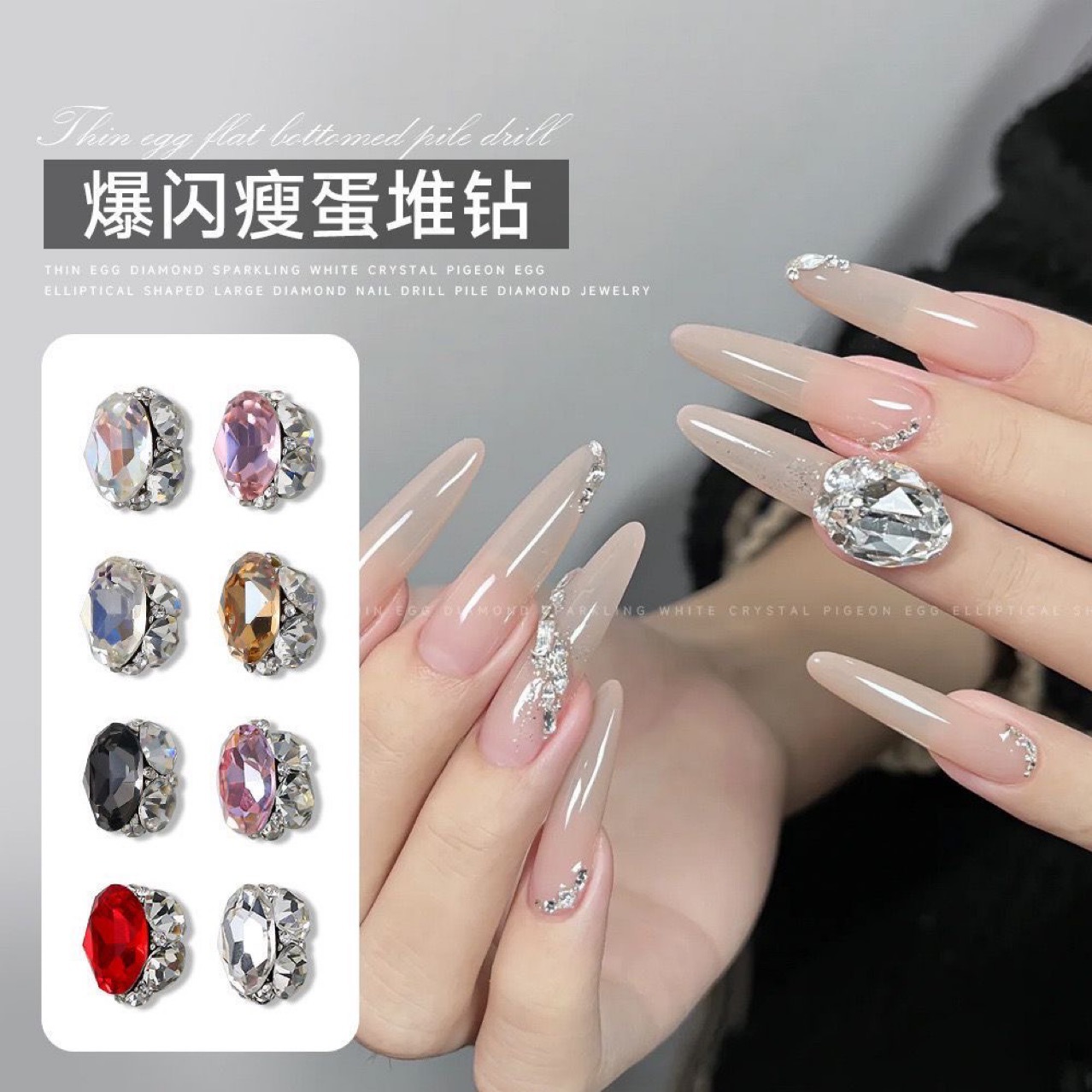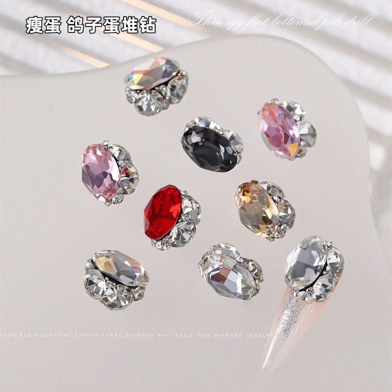 Net Celebrity 폭발 네일 아트 타원형 스택 드릴 화이트 슈퍼 플래시 얇은 계란 크리스탈 스택 드릴 스테레오 마무리 드릴 네일 쥬얼리
