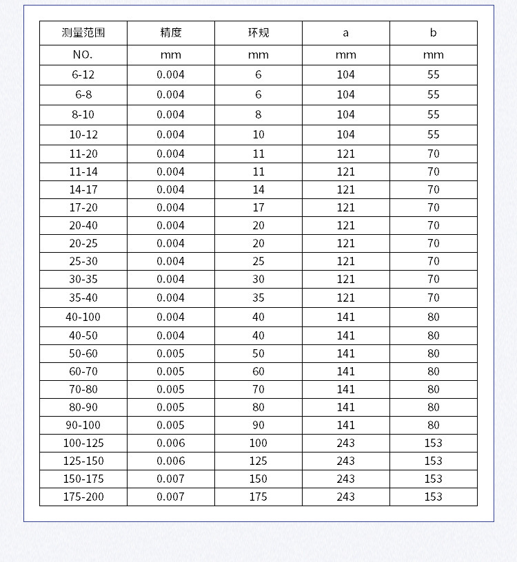 • 3륙 기계 3점 내경 100-125mm(링 게이지 제외)