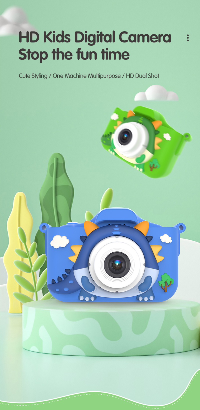4800W 새로운 HD 더블 사진 만화 공룡 미니 디지털 카메라 어린이 사진 카메라 생일 선물스토어 가기