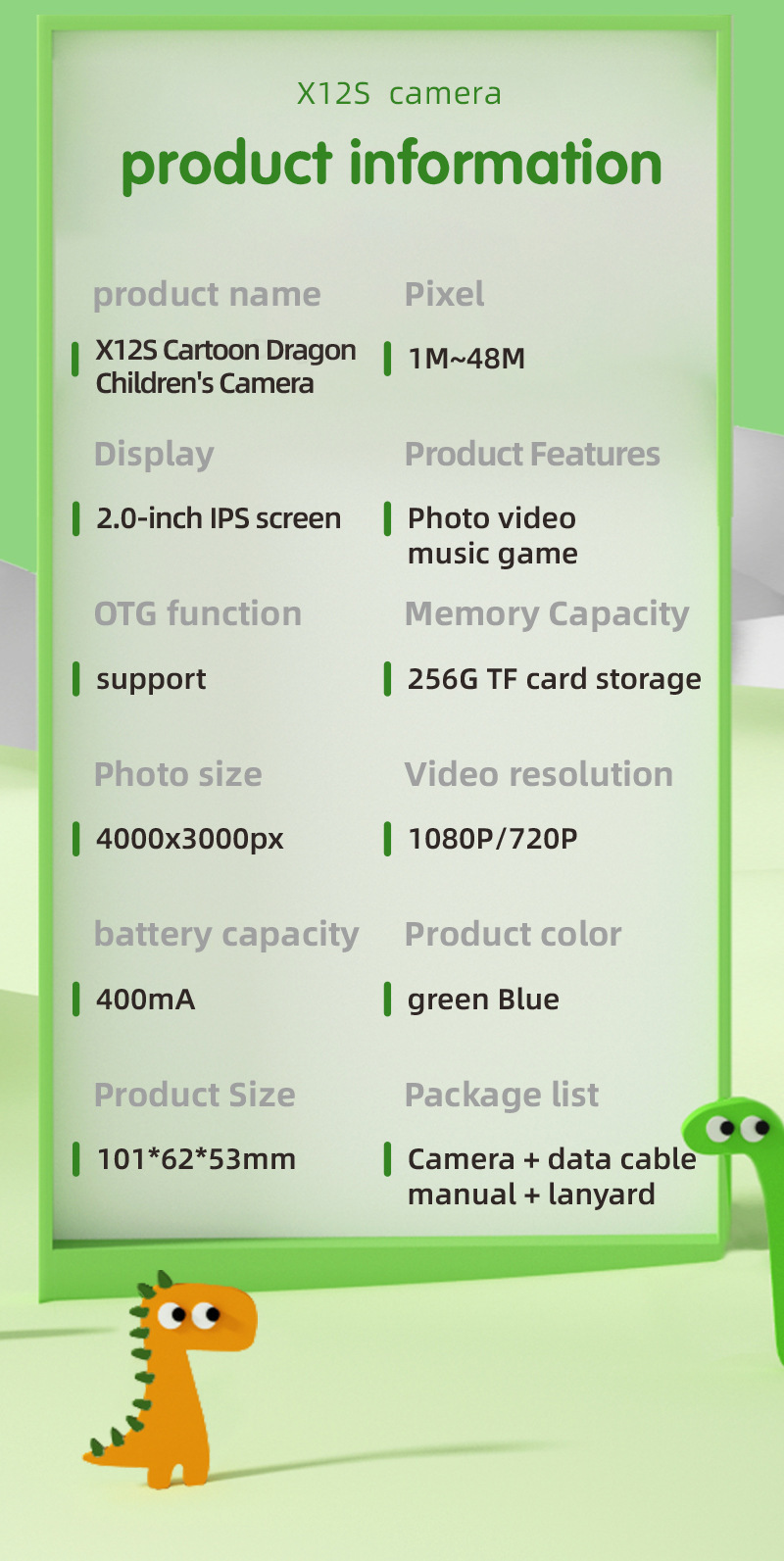 4800W新款高清双摄卡通恐龙迷你数码照相机儿童拍照相机生日礼物