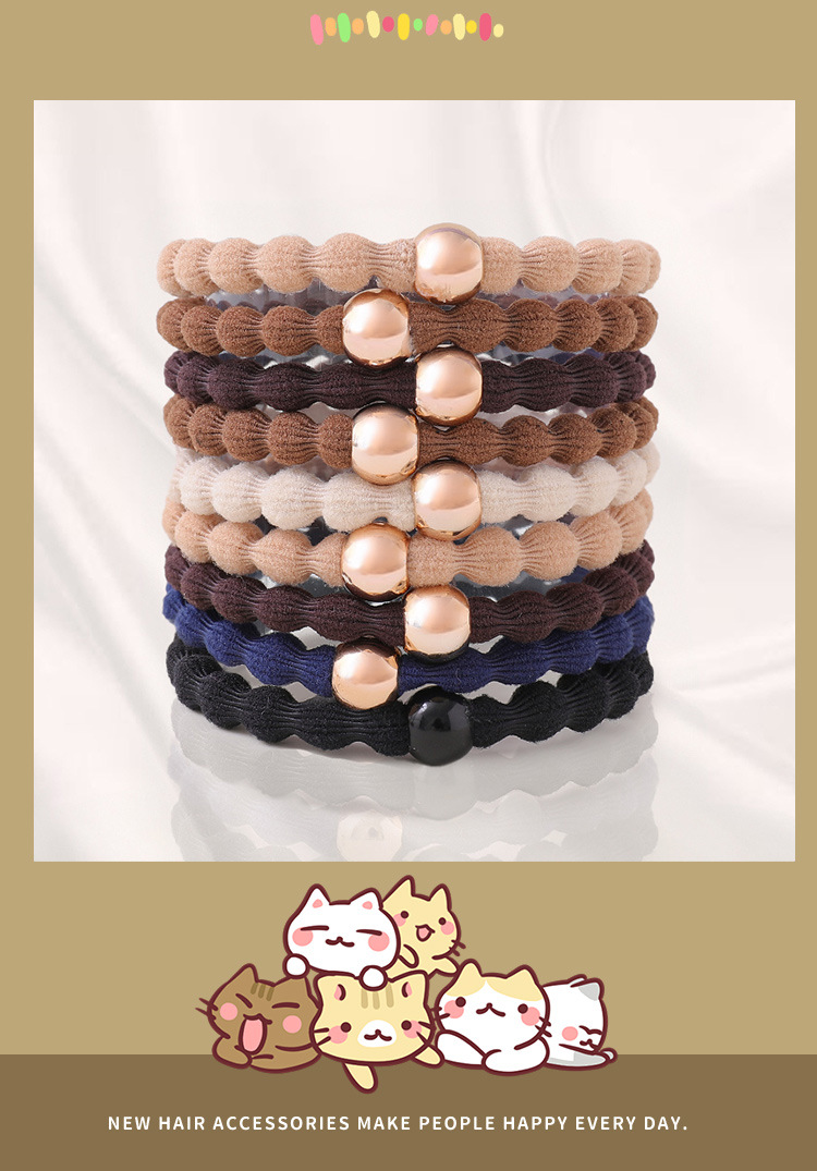 • [다크브라운 컬러] 황금구슬 비니 머리끈 (5개입)