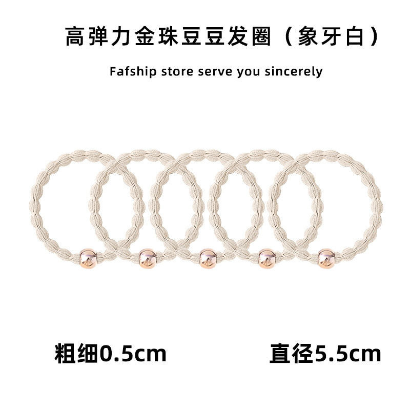 • [아이보리화이트] 황금구슬 비니 머리끈 (5개입)