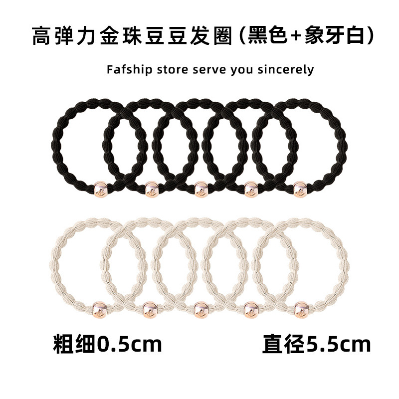 • [아이보리화이트] 황금구슬 비니 머리끈 (10개입)