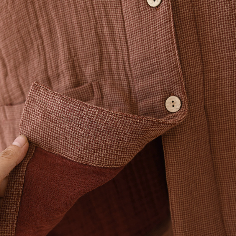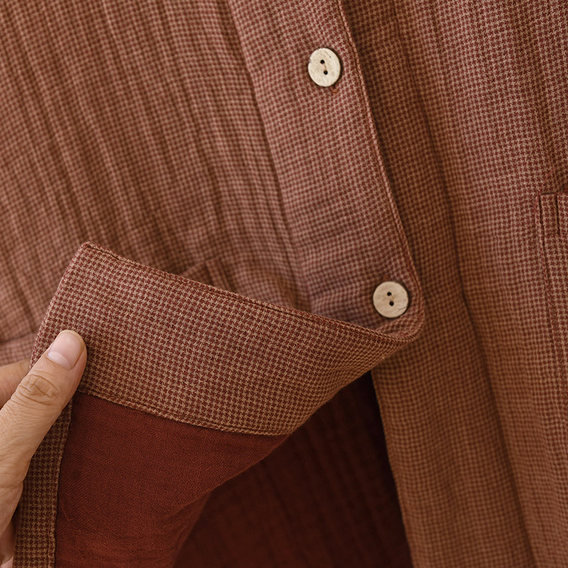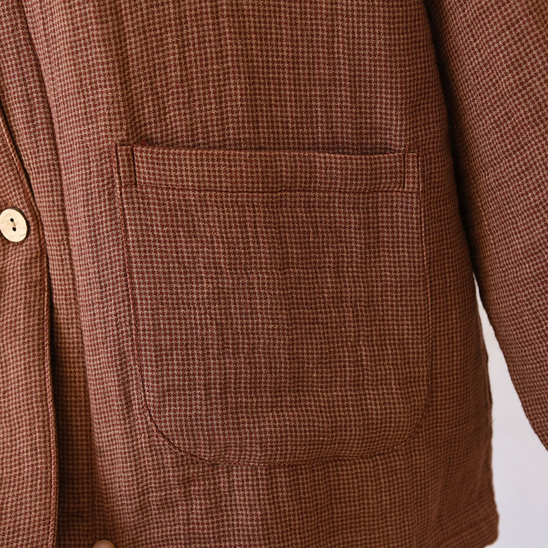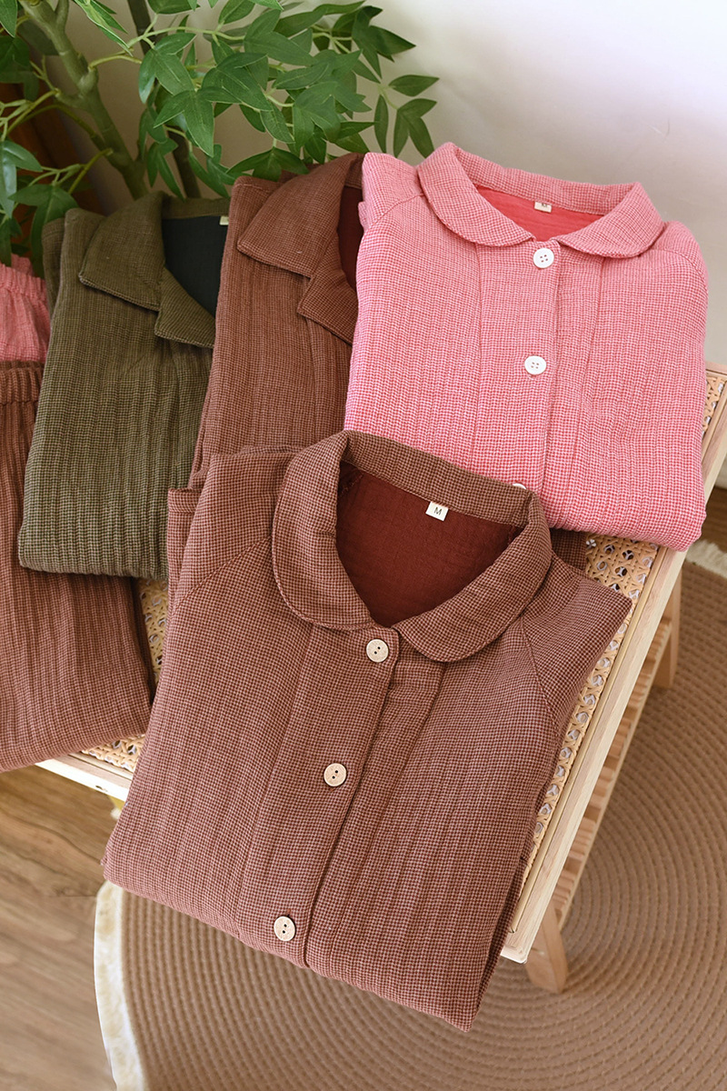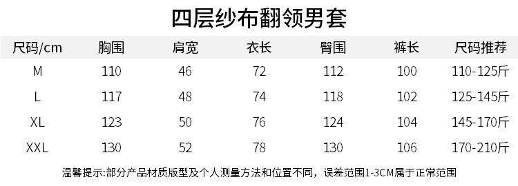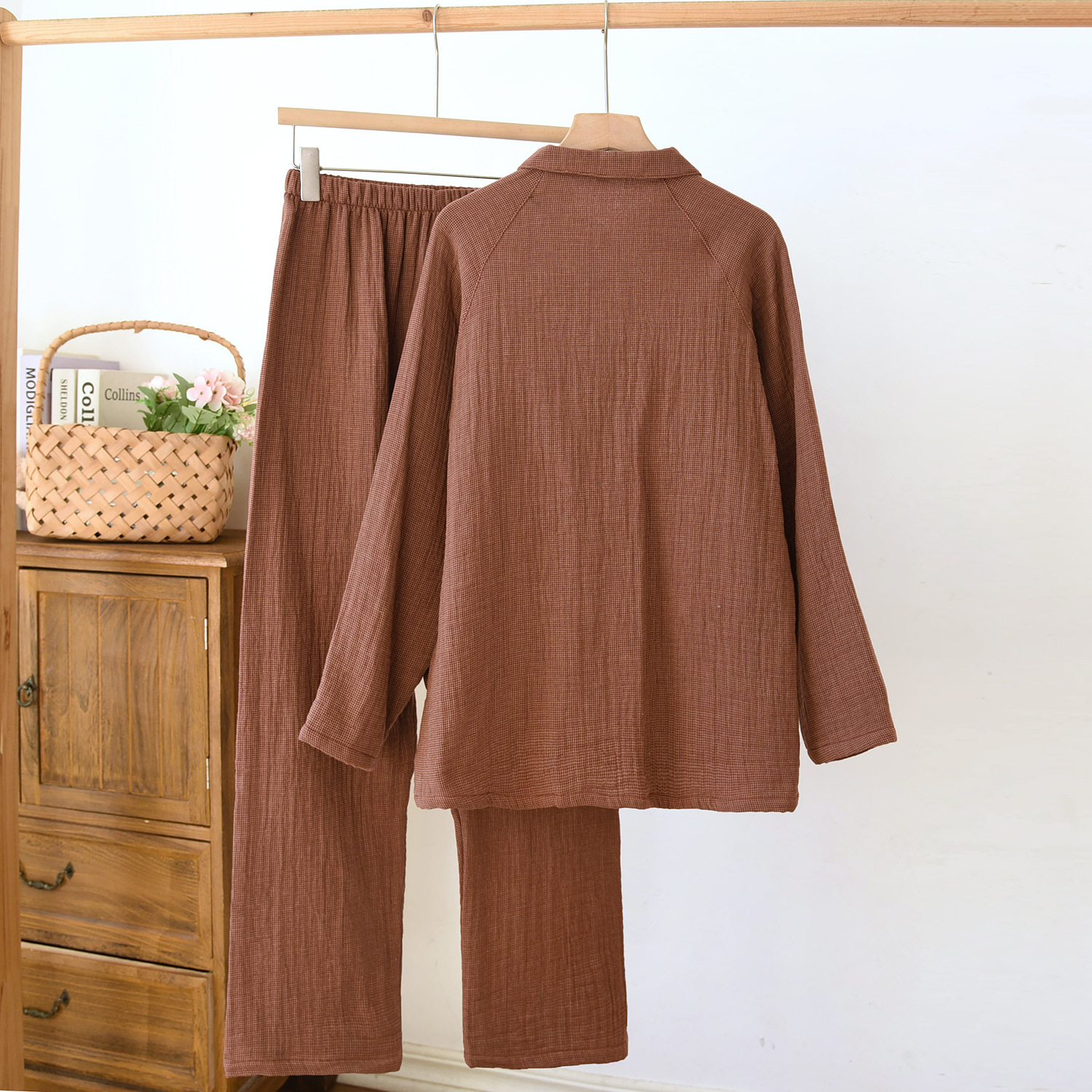• LYZ 워싱 4겹 거즈 라펠 남성용 세트 - 브라운