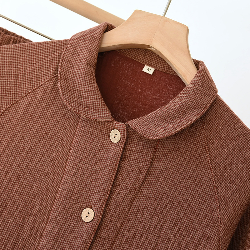• LYZ 워싱 4겹 거즈 라운드넥 여성용 커버 - 커피 컬러