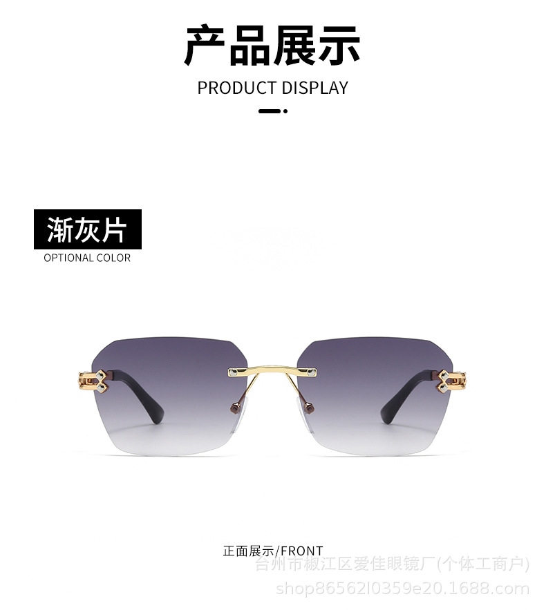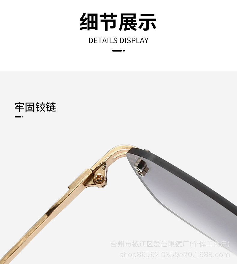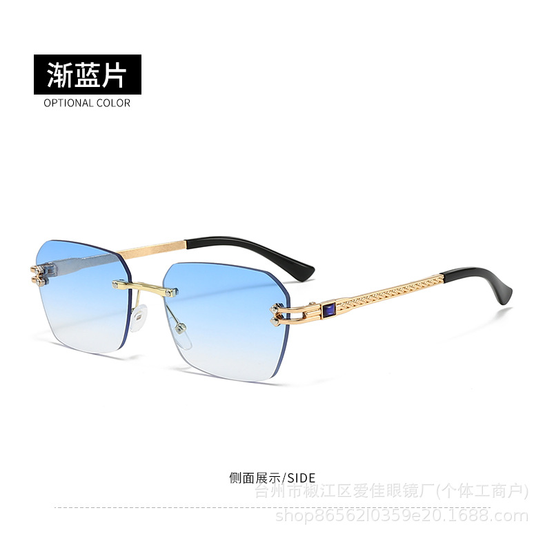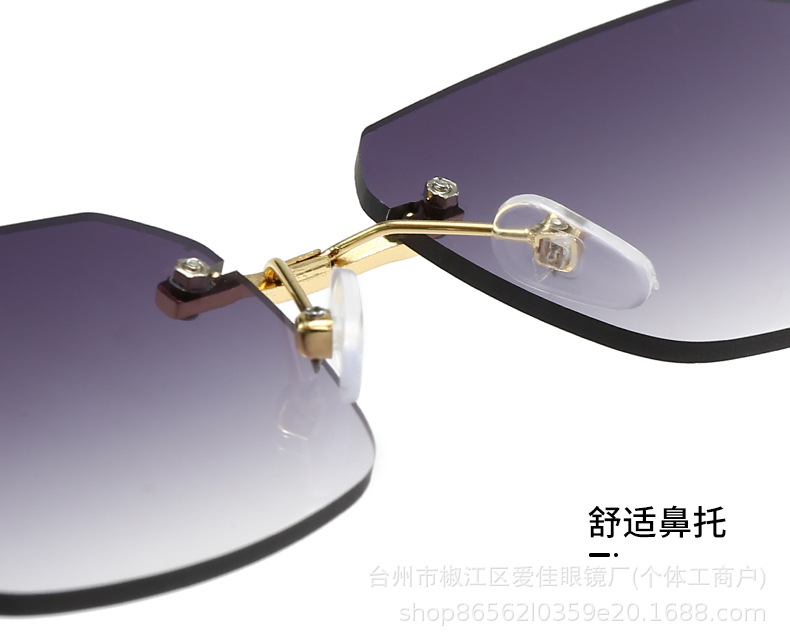 새로운 유럽과 미국의 패션 프레임리스 트림 선글라스 맞춤형 트렌디 선글라스 여성 선글라스 공장 재고 공급스토어 가기