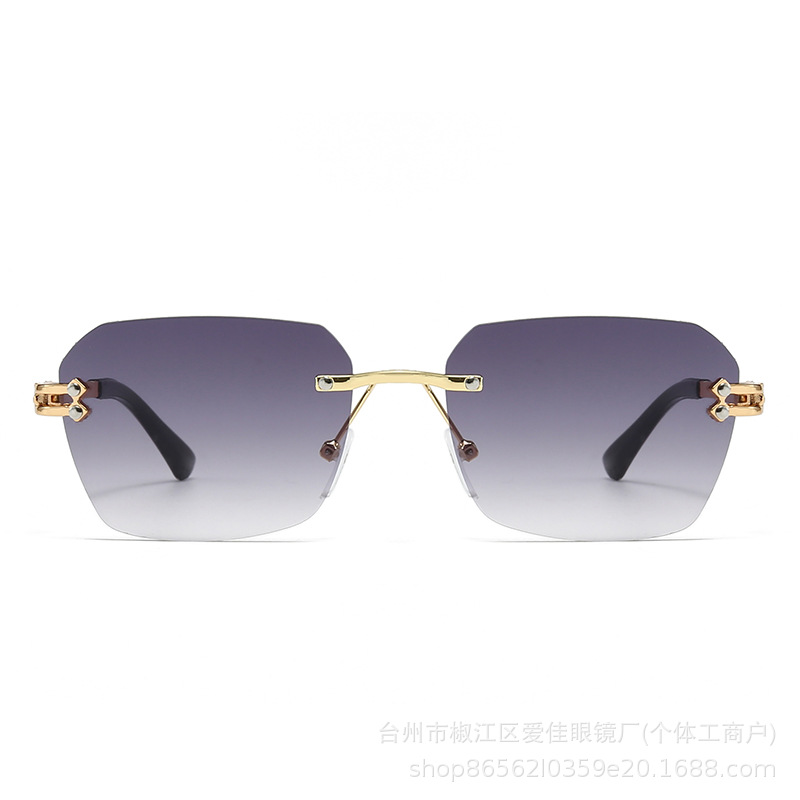 새로운 유럽과 미국의 패션 프레임리스 트림 선글라스 맞춤형 트렌디 선글라스 여성 선글라스 공장 재고 공급