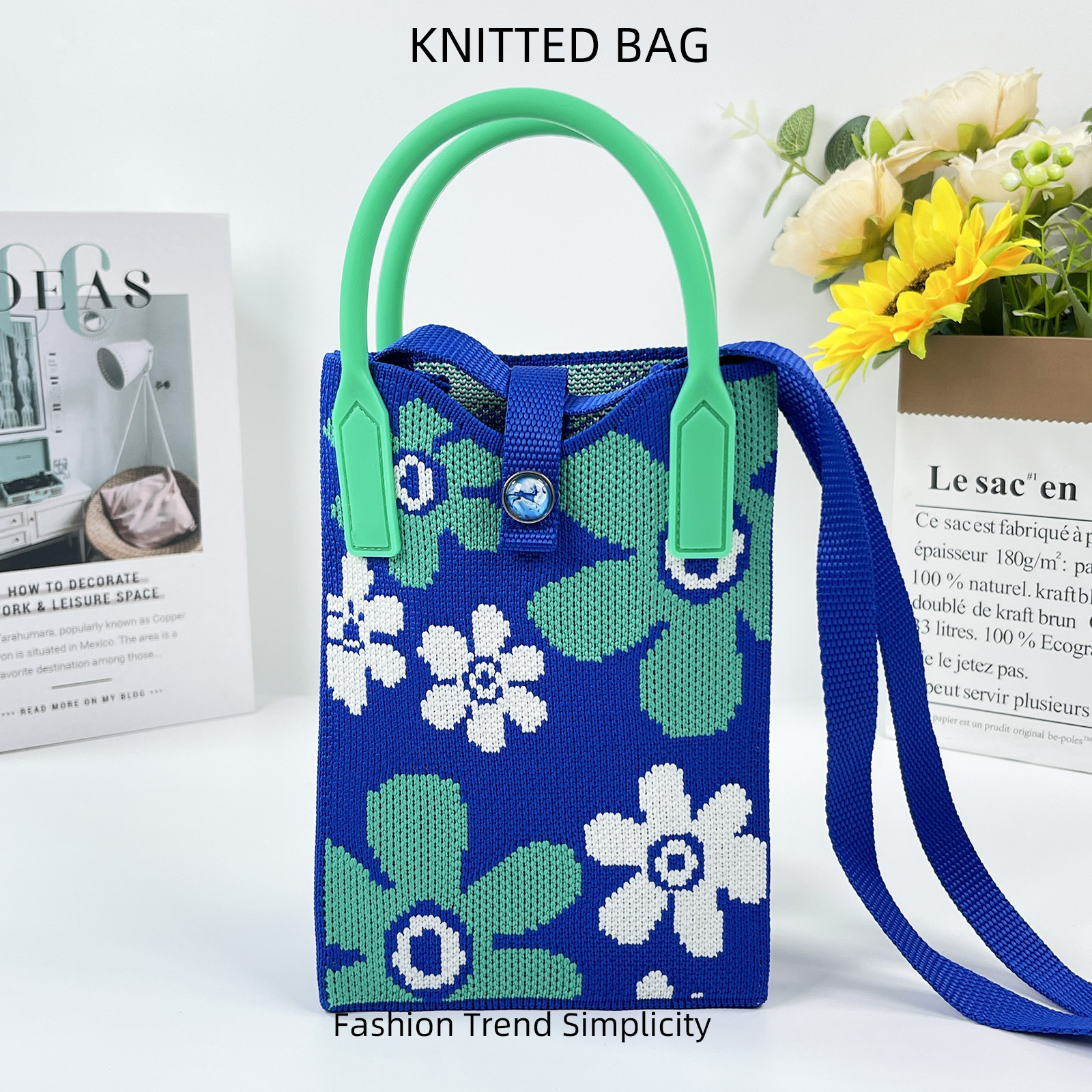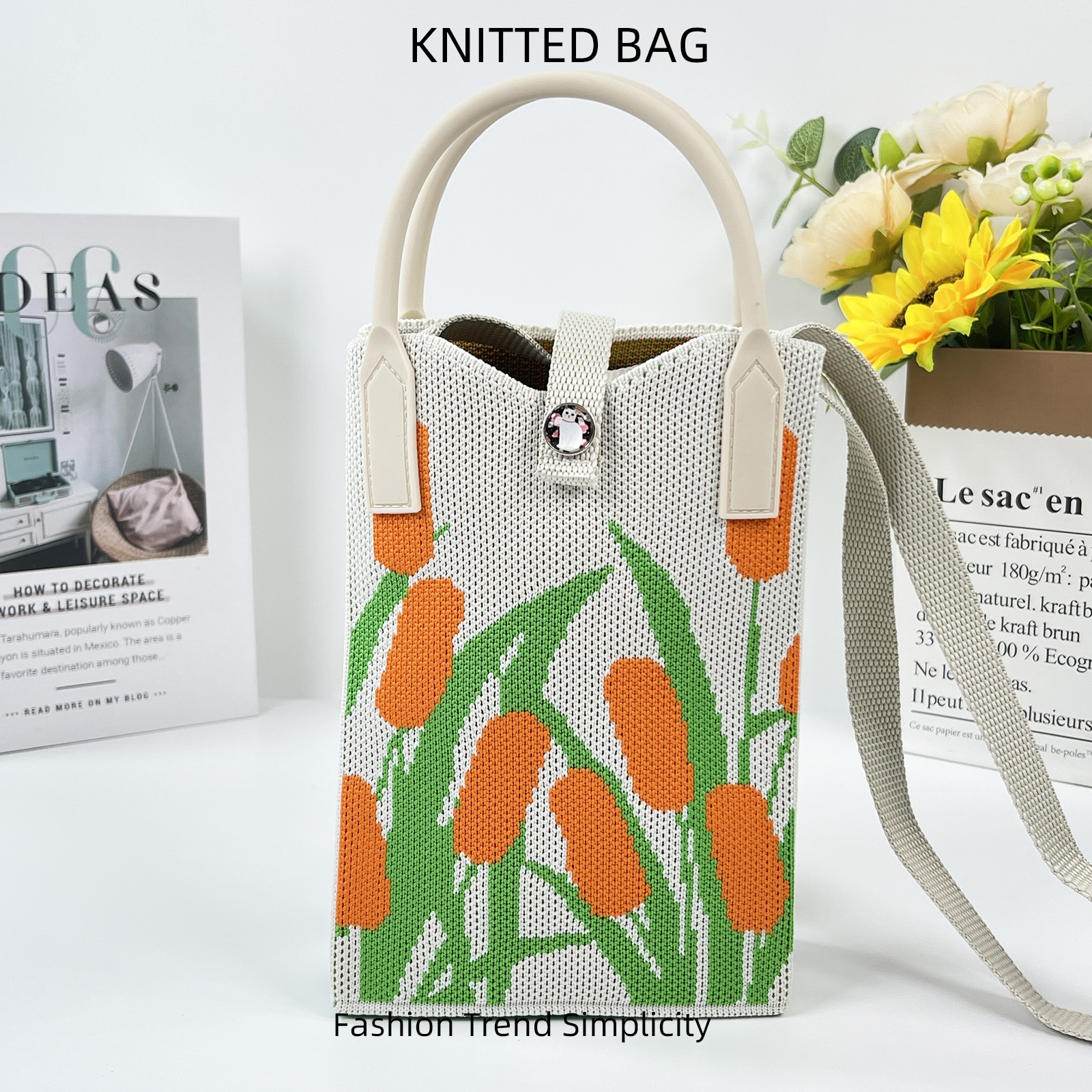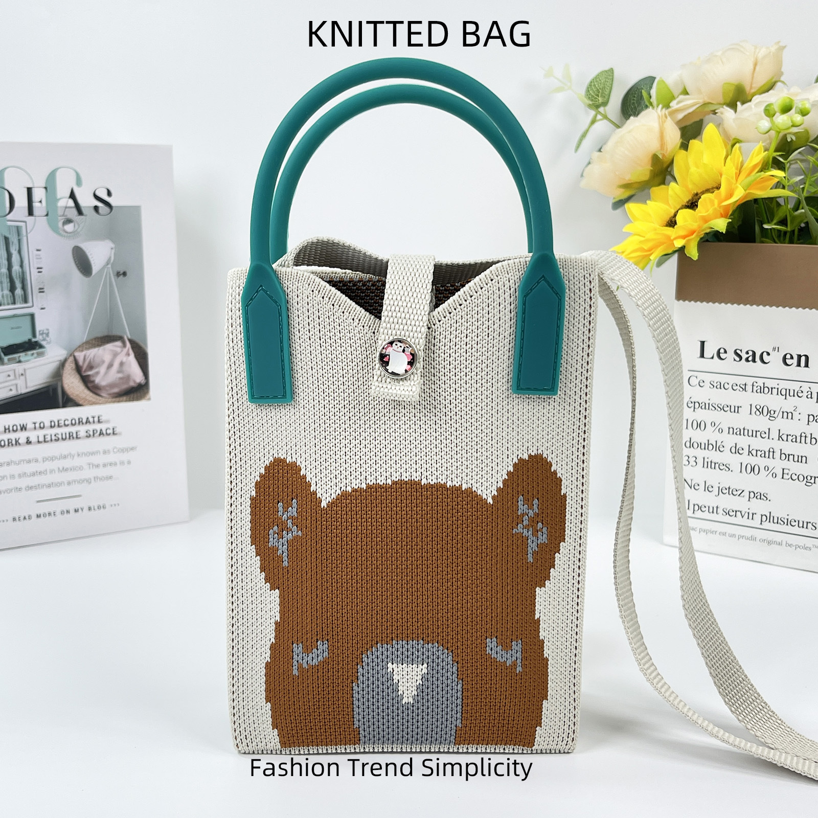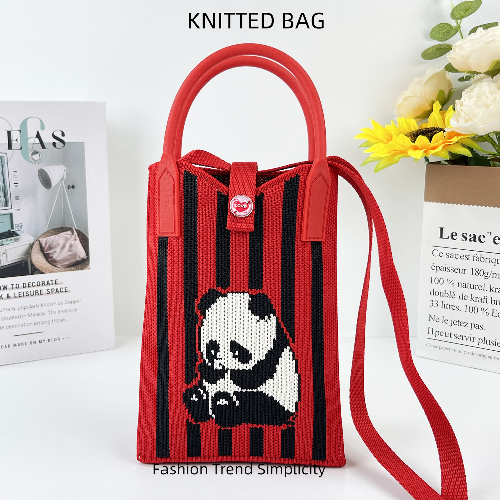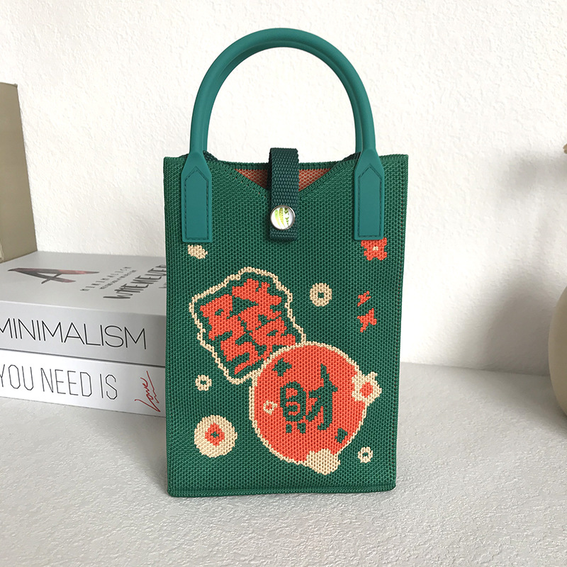 2024 한국 스타일 새로운 도착 틈새 팬더 싱글 어깨 크로스 바디 휴대 전화 가방 니트 가방 핸드백 맞춤형 캐주얼 동전 지갑스토어 가기