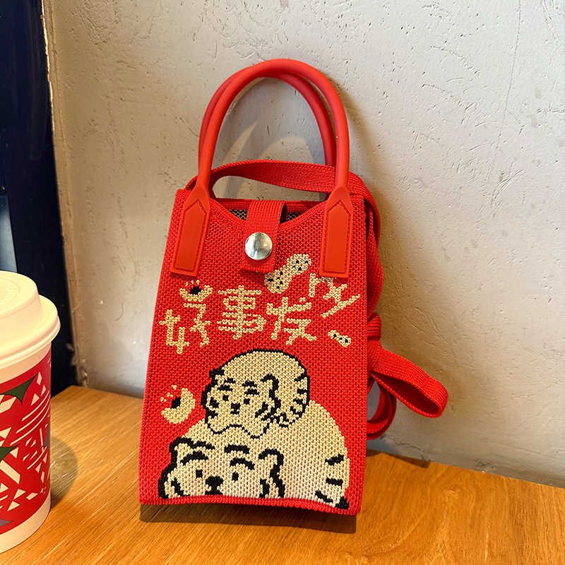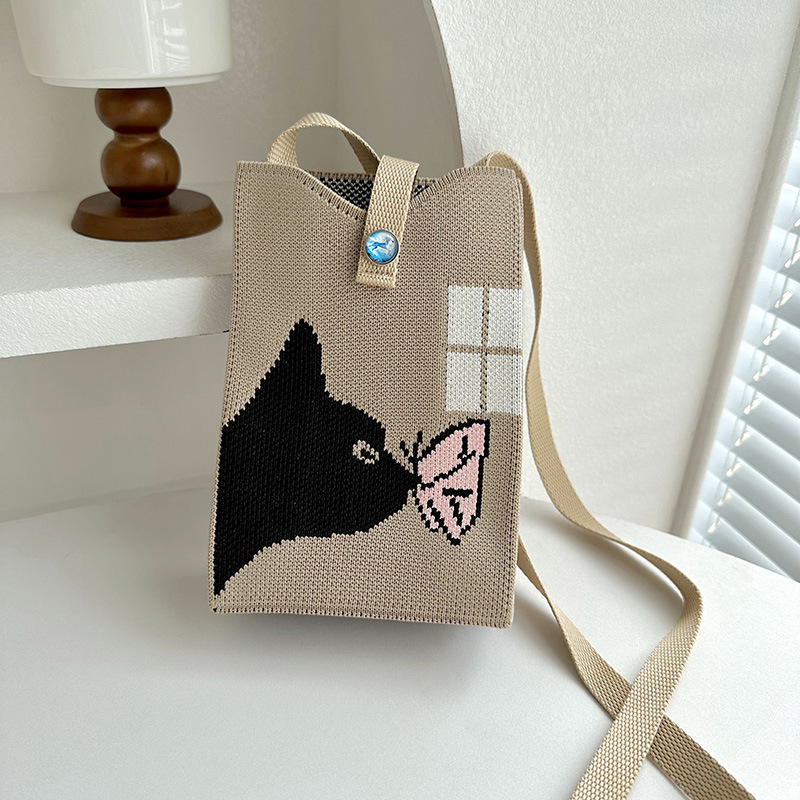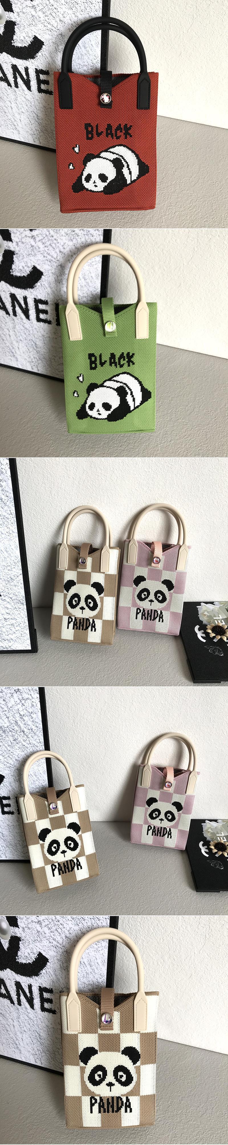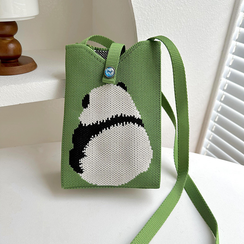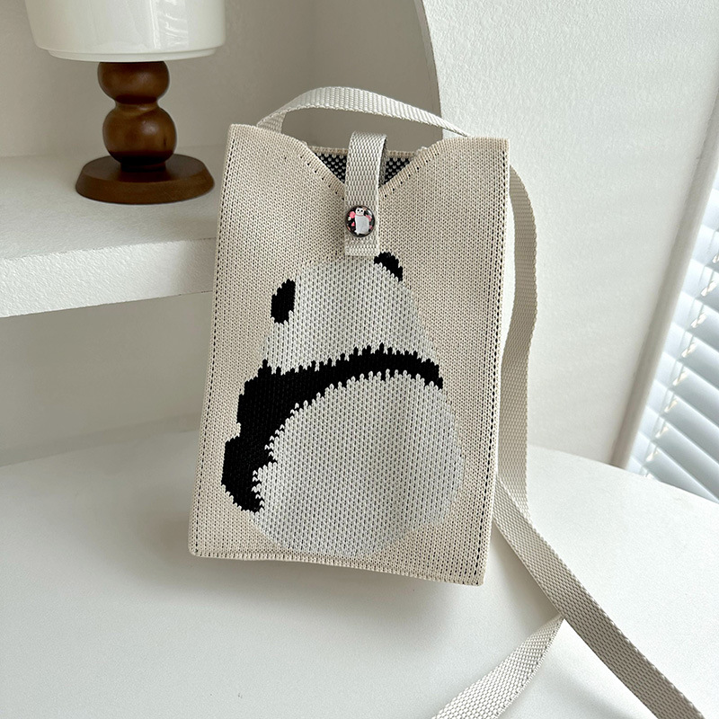 2024 한국 스타일 새로운 도착 틈새 팬더 싱글 어깨 크로스 바디 휴대 전화 가방 니트 가방 핸드백 맞춤형 캐주얼 동전 지갑
