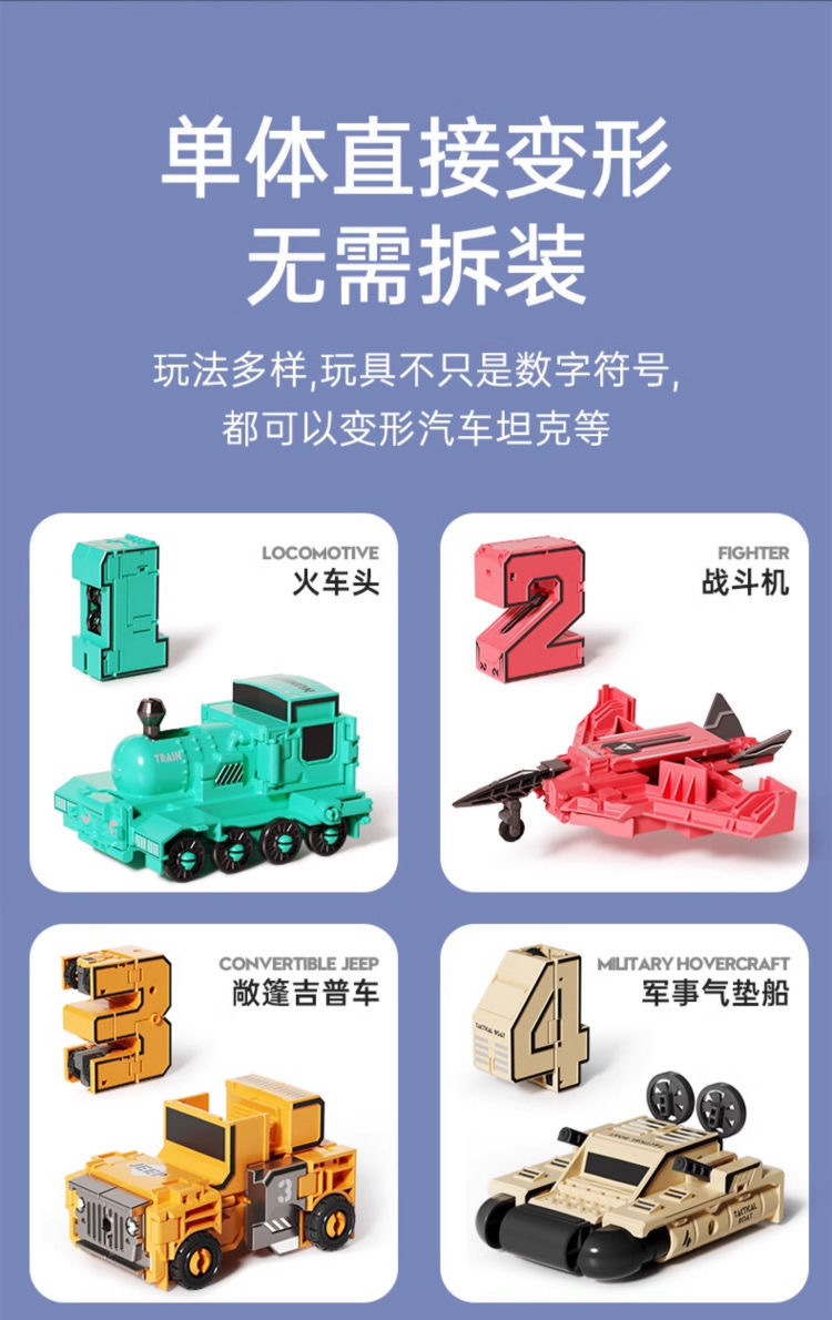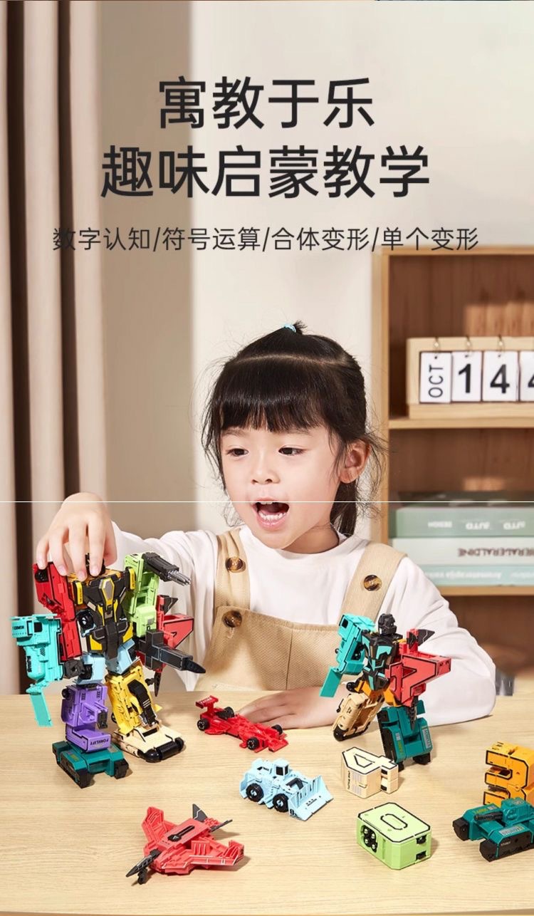국경 간 어린이, 디지털 장난감 변형 로봇 퍼즐 조립 프로젝트 자동차 소년 3 ~ 6 세 선물 증가