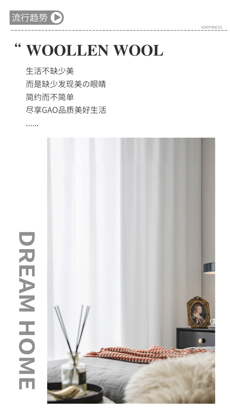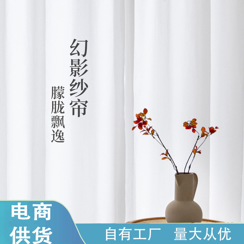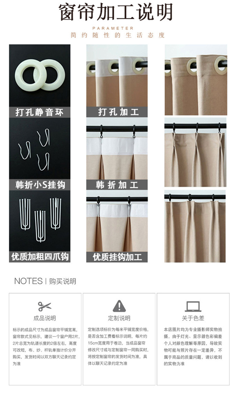 Phantom Yarn 인터넷 연예인 두꺼운 커튼 화이트-불투명 침실 거실 발코니 베드벤치 창 스크린