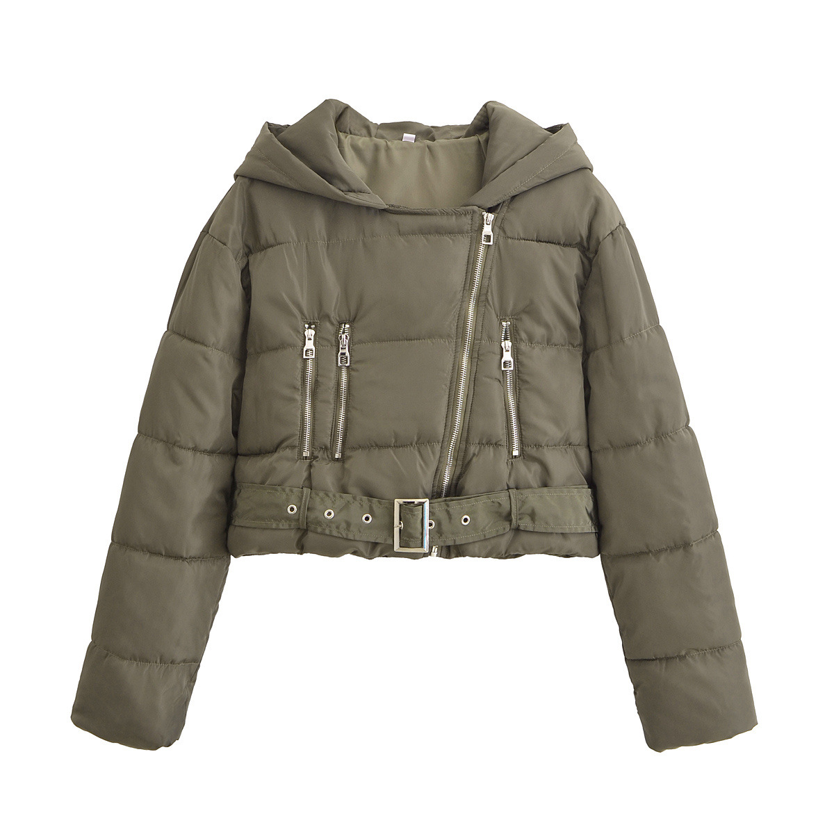 UC & ZA 국경 아마존 여성 의류 유럽과 미국 스타일 패션 짧은 벨트 캐주얼 후드 지퍼 코튼 패딩 재킷