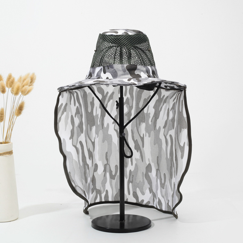 야외 모기 방지 모자 남성과 여성의 낚시 모자 얼굴을 덮는 자외선 차단제 통기성 메쉬 마스크 야간 낚시 방충 꿀벌 양봉 모자