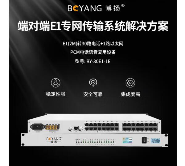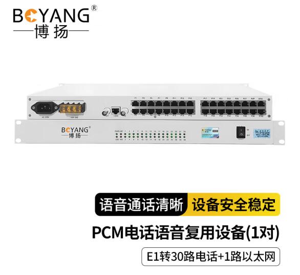博扬(BOYANG) PCM电话语音复用设备 pcm电话光端机 E1转30路电话+1路以太网 机架式 1对价 BY-30E1-1E*1*合格证*保修卡