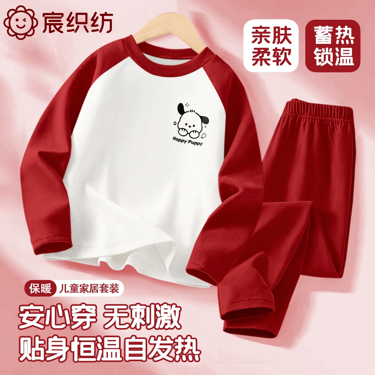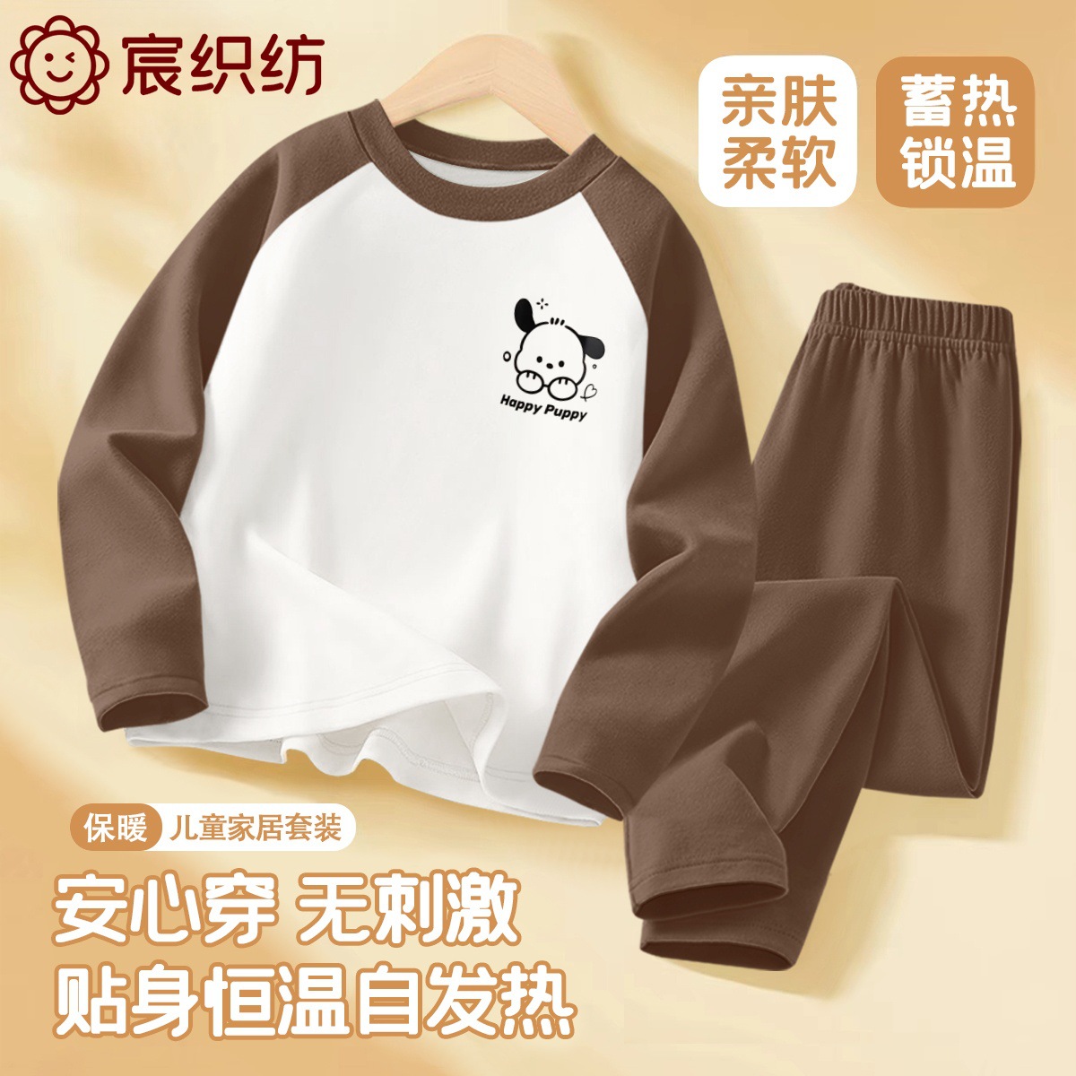 남학생 잠옷 가을과 겨울 어린이 벨벳 열 속옷 세트 여아 가을 옷과 바지 투피스 홈 옷스토어 가기