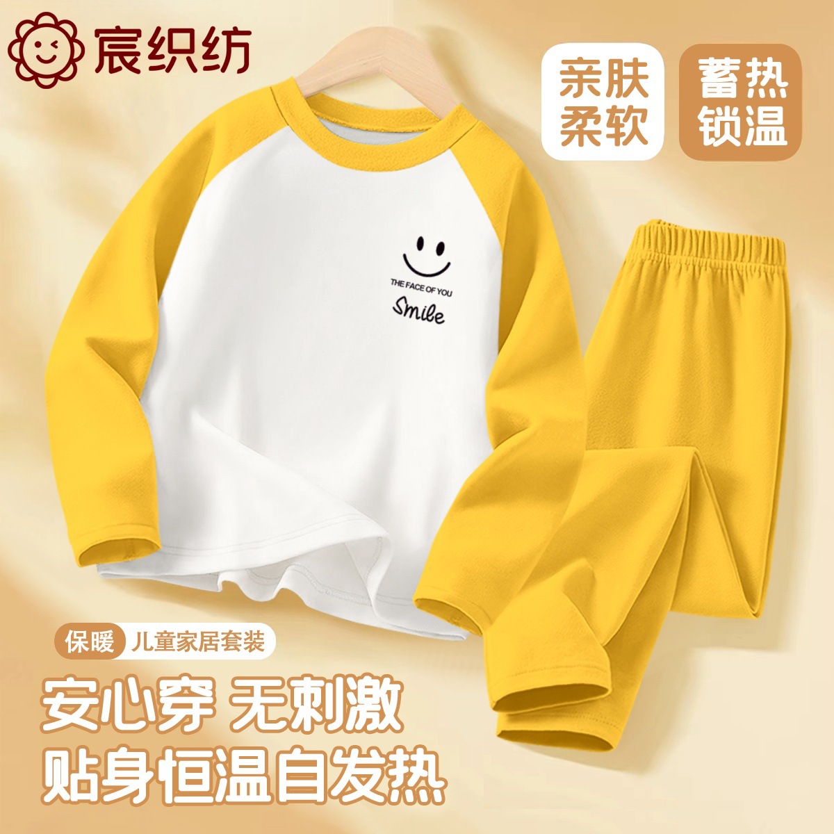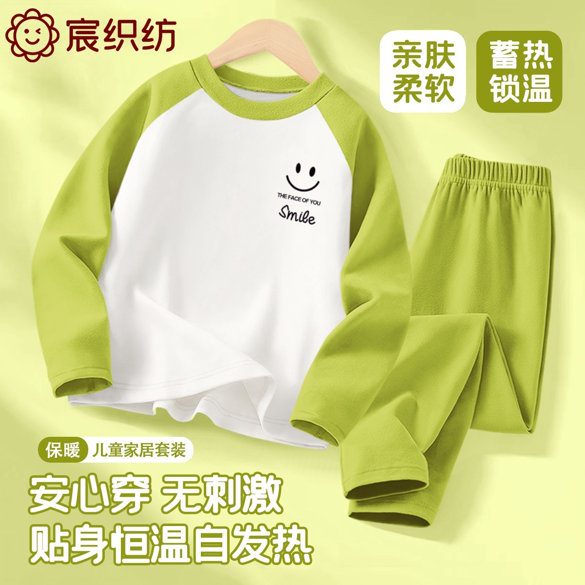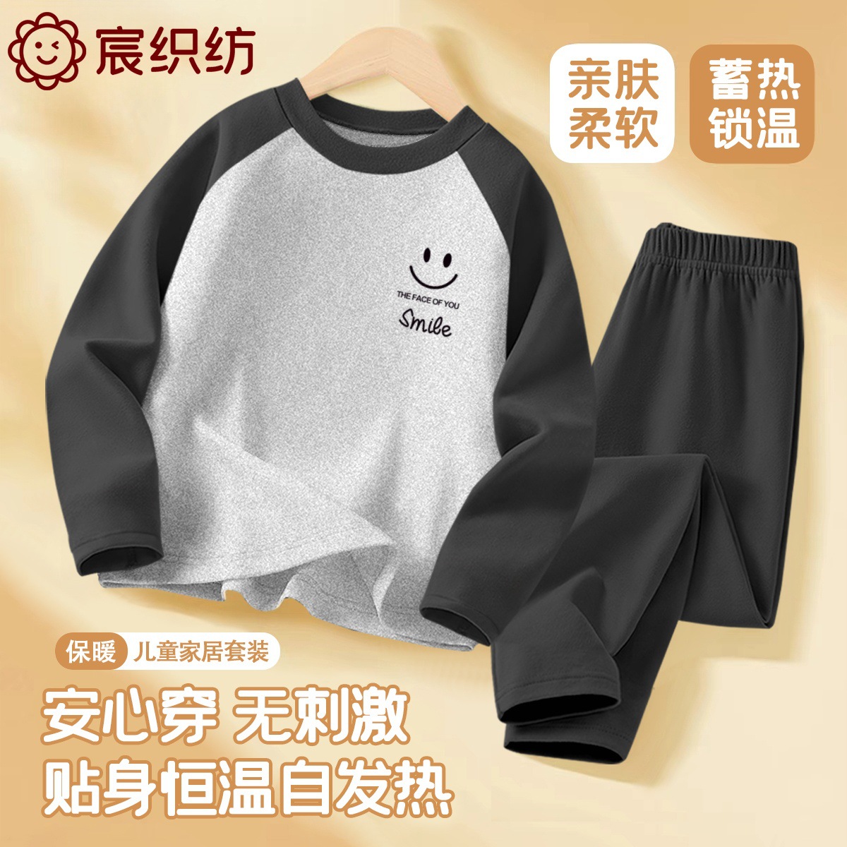 남학생 잠옷 가을과 겨울 어린이 벨벳 열 속옷 세트 여아 가을 옷과 바지 투피스 홈 옷
