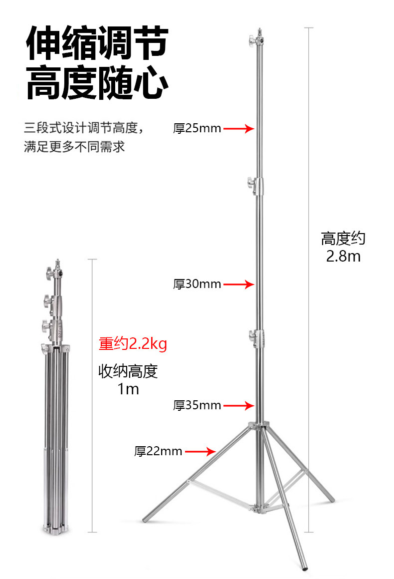 휴대 전화 라이브 사진 조명 보충 브래킷 알루미늄 합금 대담한 라이트 브래킷 2.8 미터 스테인레스 스틸 바닥 삼각대
