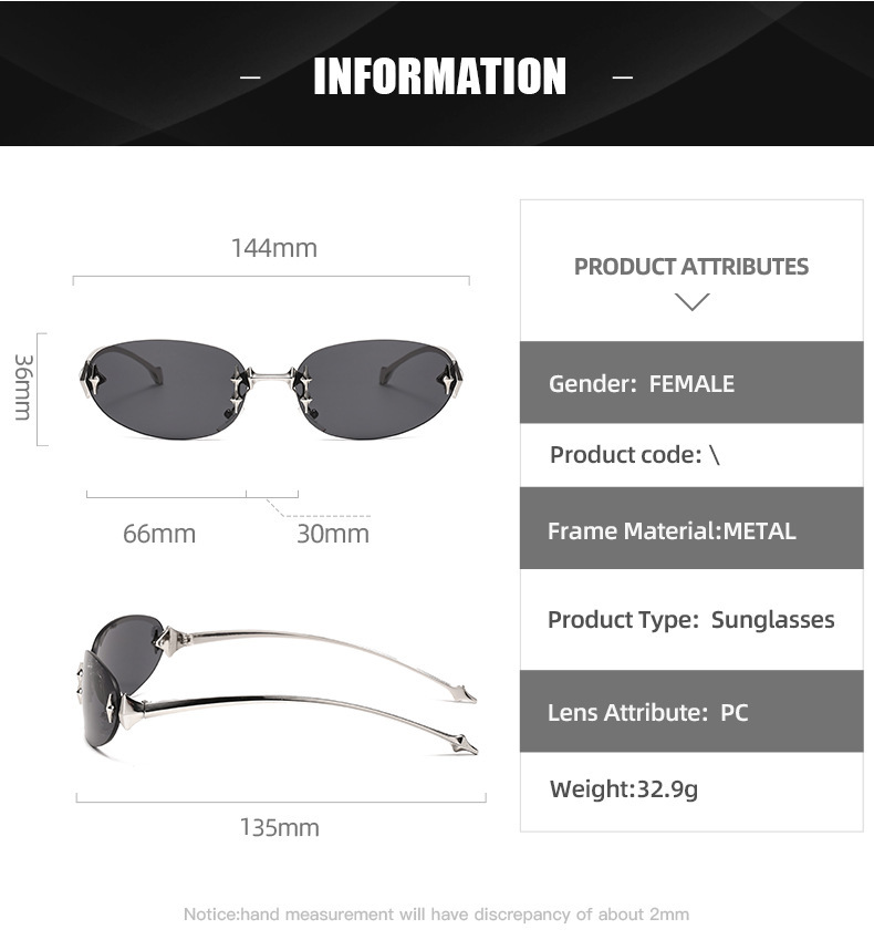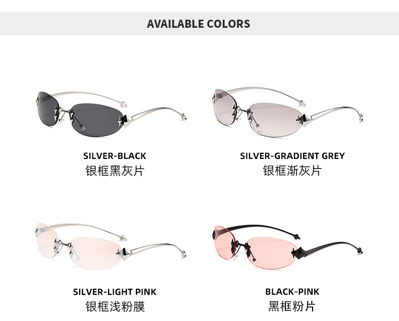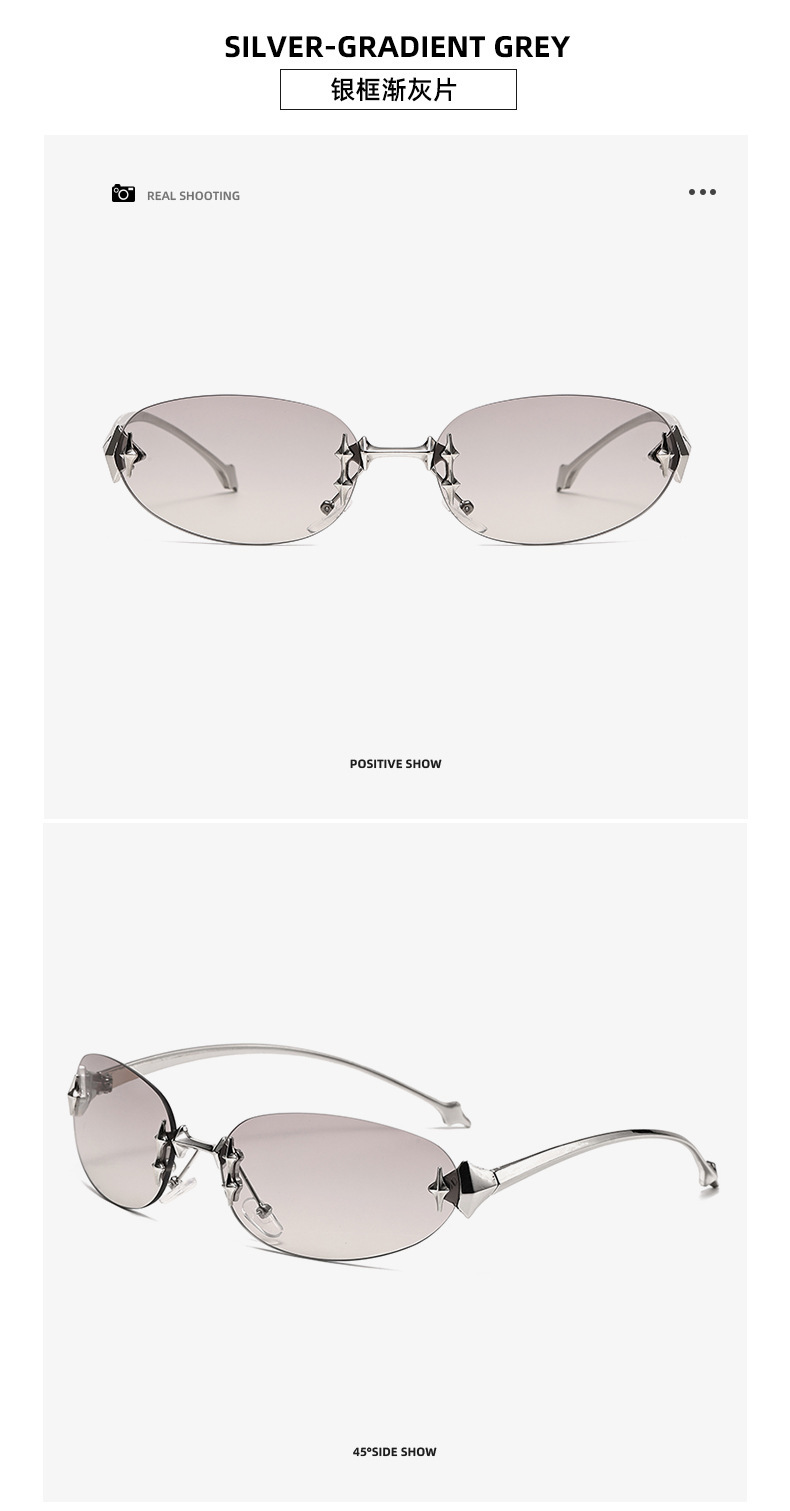 Y2K 프레임리스 타원형 금속 선글라스 gm 뜨거운 소녀 물고기 뼈 대외 무역 스트리트 비트 스타 고양이의 눈 유럽과 미국 선글라스스토어 가기